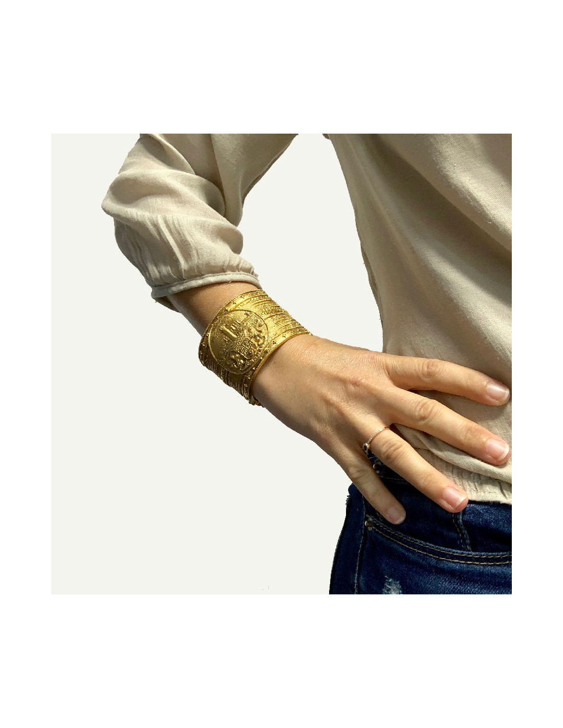 Last items in stock BRACELETS MARGUERITE de VALOIS Couture cuff bracelet in gilt metal and molten glass cabochons MARGUERITE DE VALOIS 23676 1,500.00 € Marguerite de Valois couture cuff bracelet made of aged gold metal inlaid with cabochons in ivory and dark amber molten glass. In perfect condition. Made in France. The Maison Marguerite de Valois manufactures its jewelry in its Parisian workshops. It uses an ancestral technique for the creation of its pieces, the work of the molten glass, classified in... Add to cart