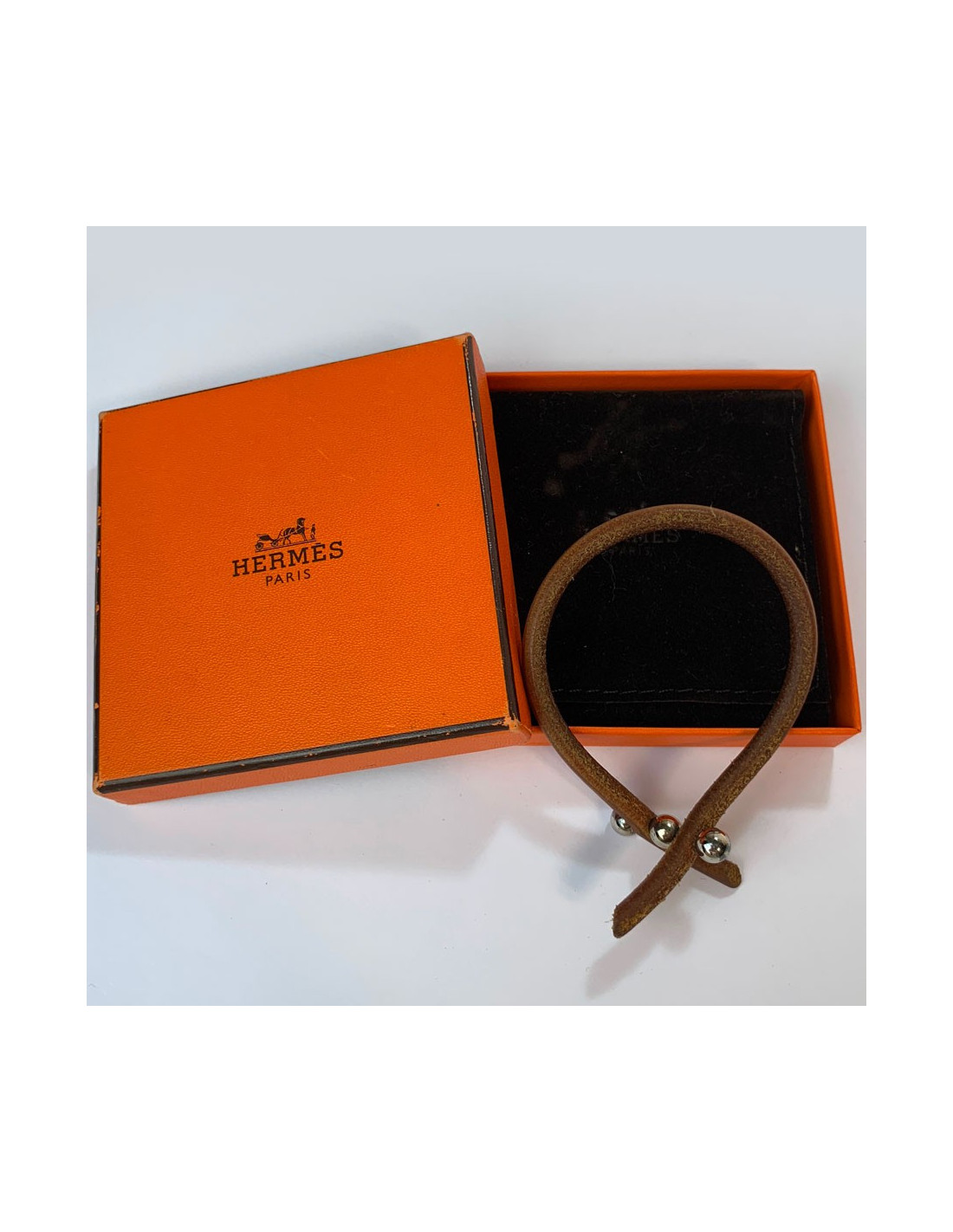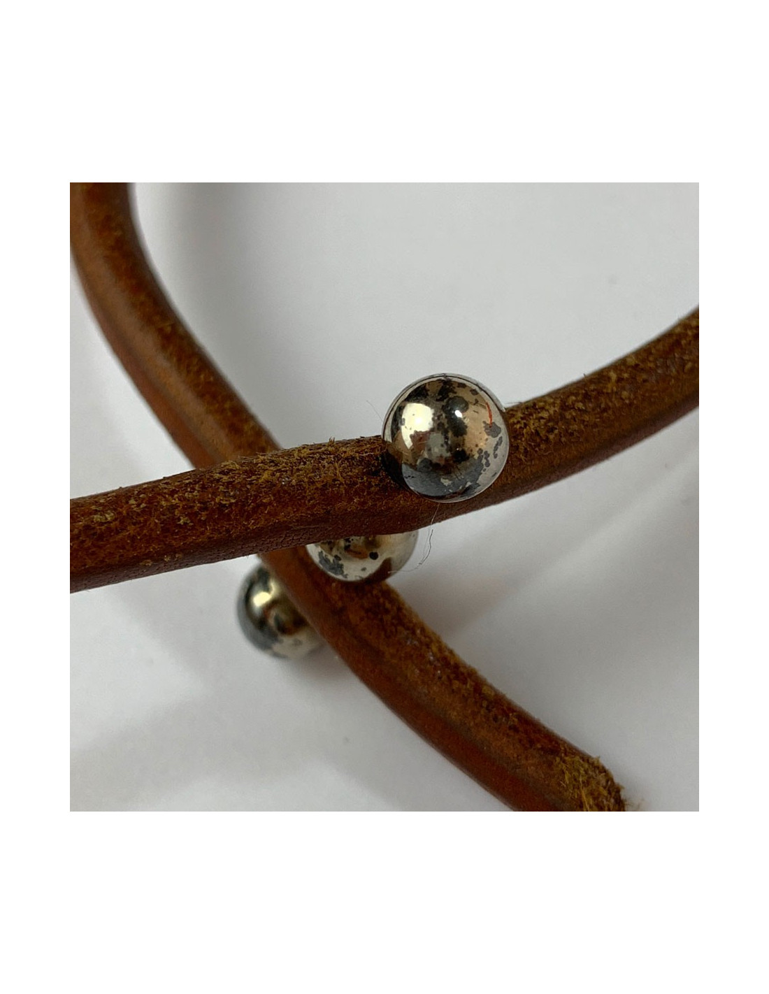Original HERMES bracelet, in brown leather and silver hardware. Just unscrew one of the silver balls to open the jewel.