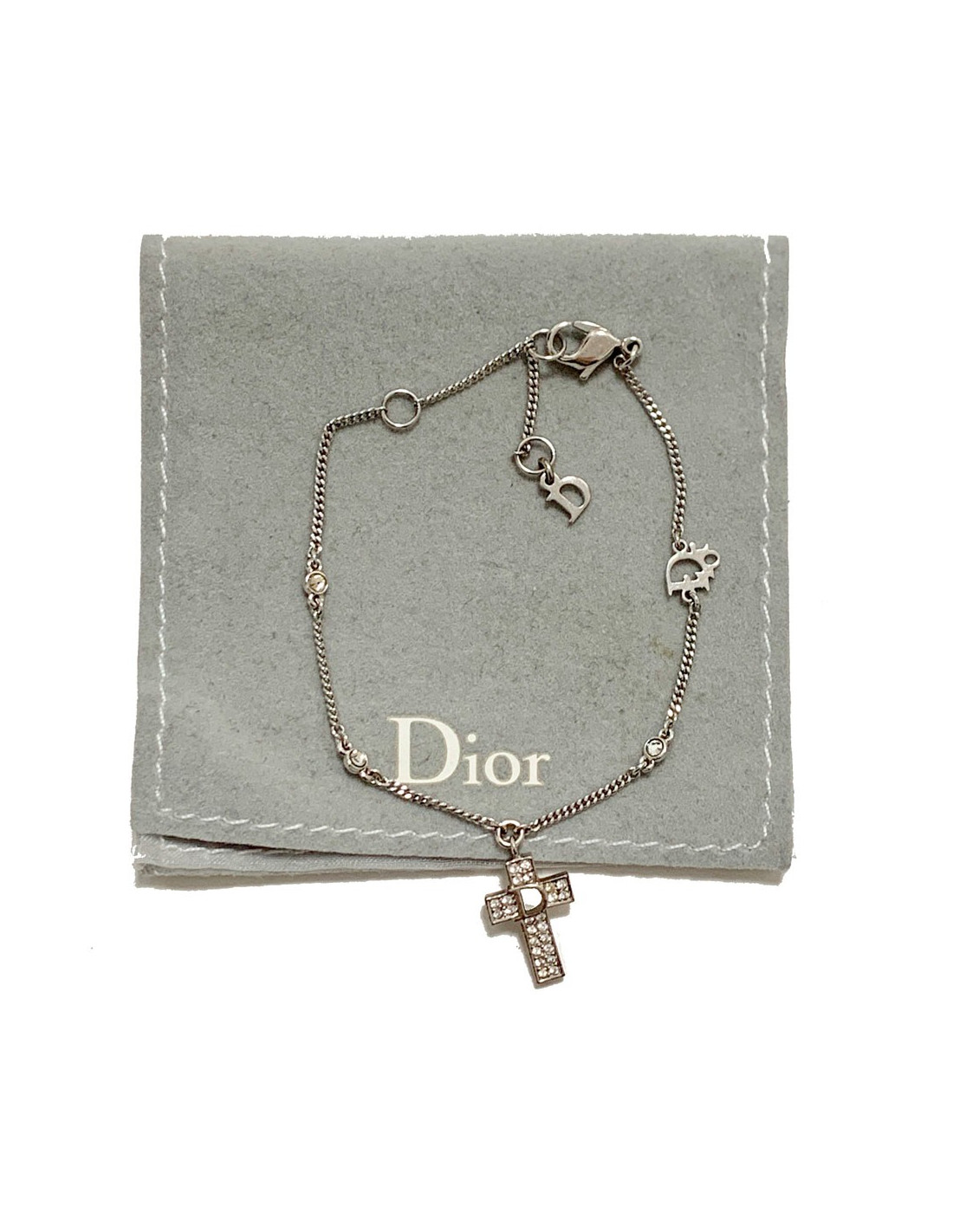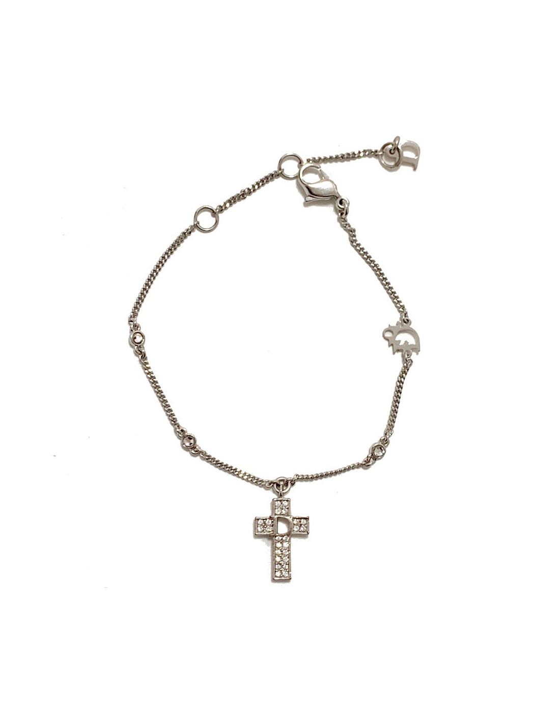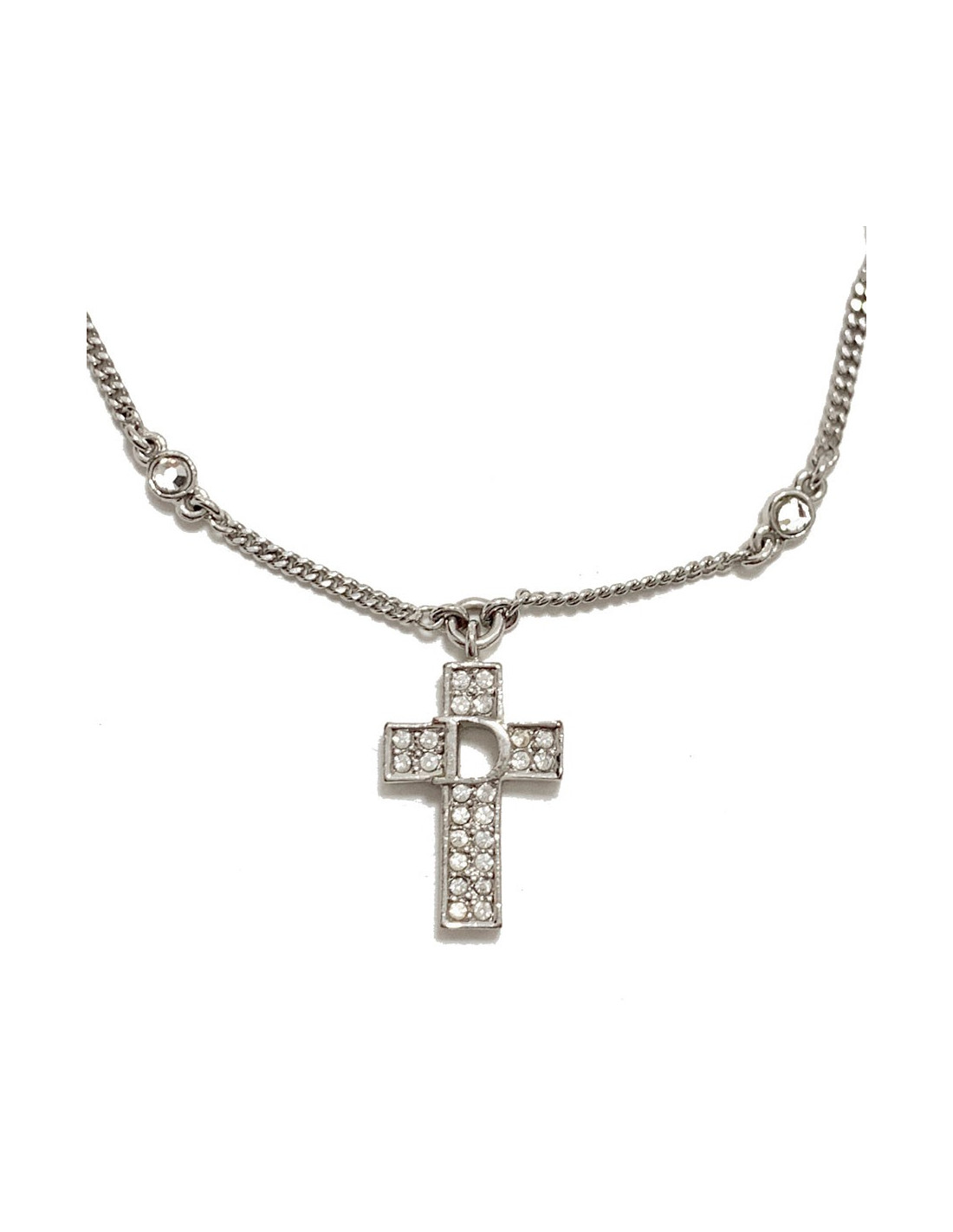 Fine silver-plated metal chain studded with rhinestones and D charms of DIOR.