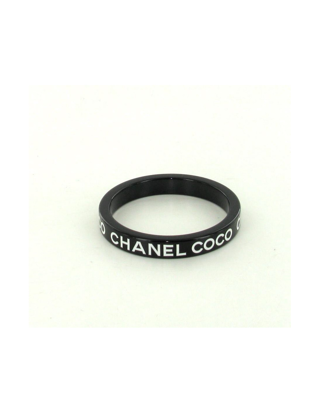 Pretty bracelet CHANEL black resin. It is marked by the famous inscription in white "Coco Chanel". Inside the bracelet, a small plaque color gold pale is engraved "CHANEL PARIS". Delivered in a Patil.