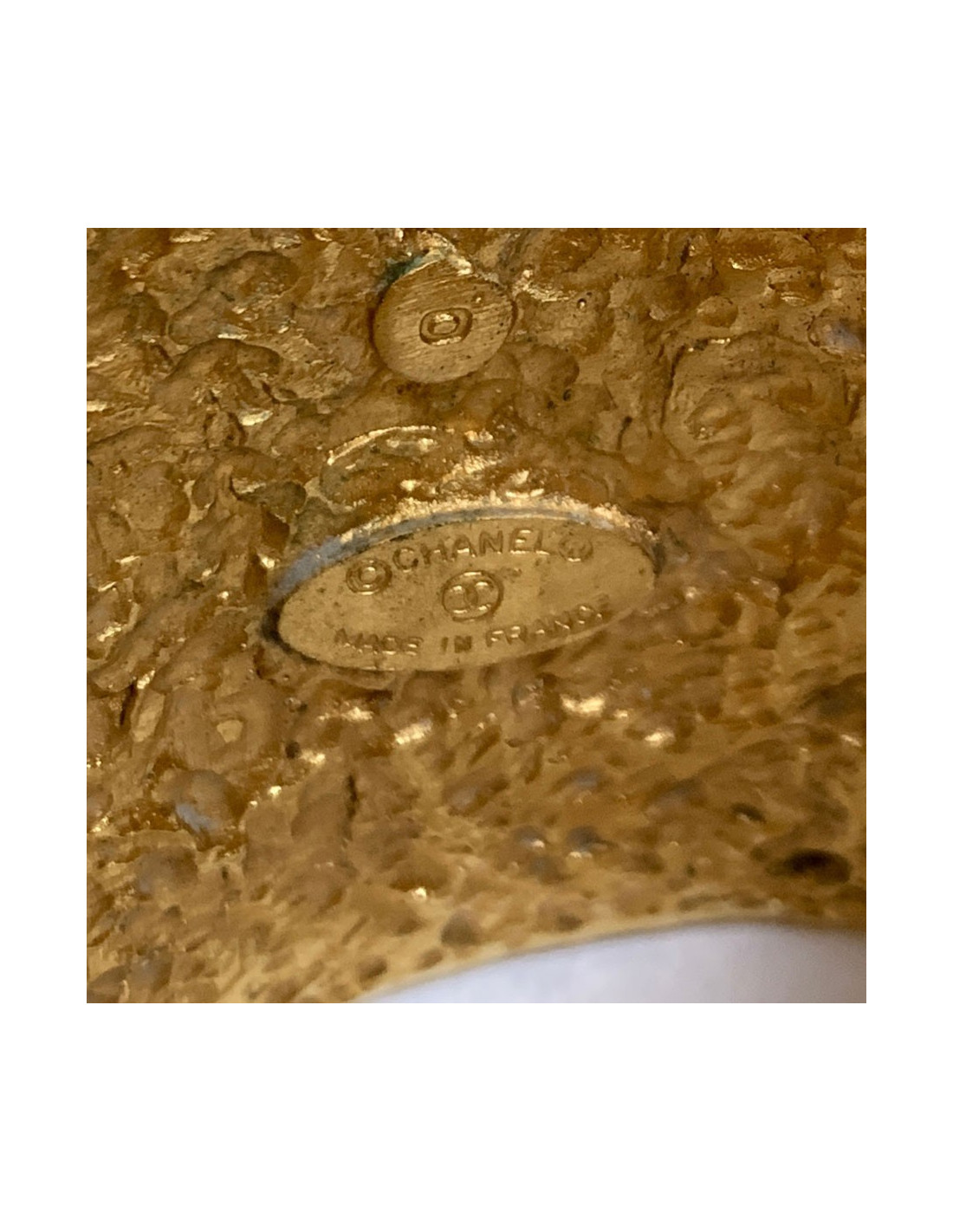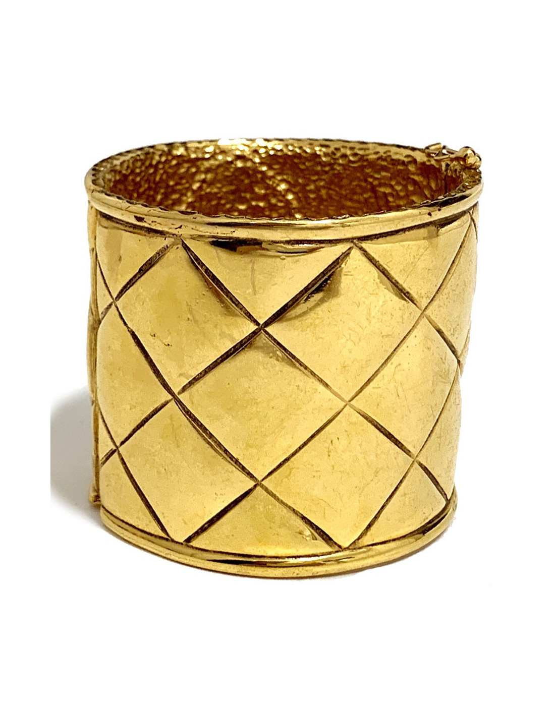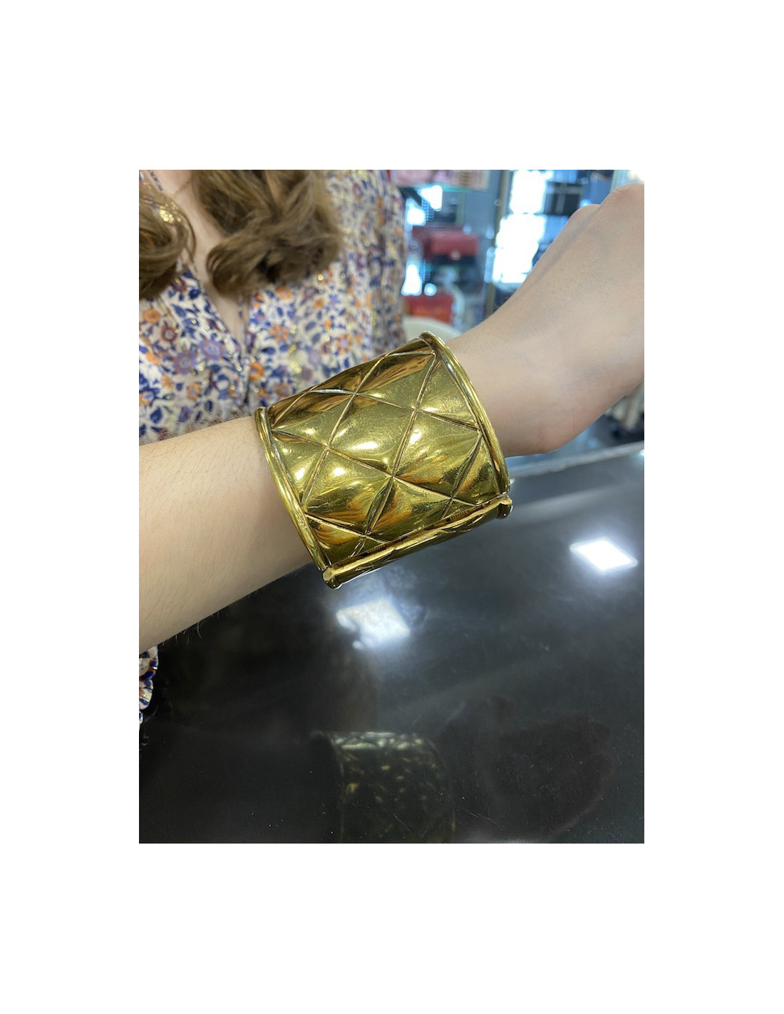 Last items in stock BRACELETS CHANEL Cruise collection gold cuff CHANEL 31315 1,250.00 € CHANEL Cruise collection gold cuff Condition : never wornMade in ItalyMaterial : metalColor: goldStamp : yesMeasurements : wrist circumference 18 cm, size M, height: 6 cm.Year : Cruise 2018 Advantage Valois Vintage Paris : comes in its CHANEL box Add to cart