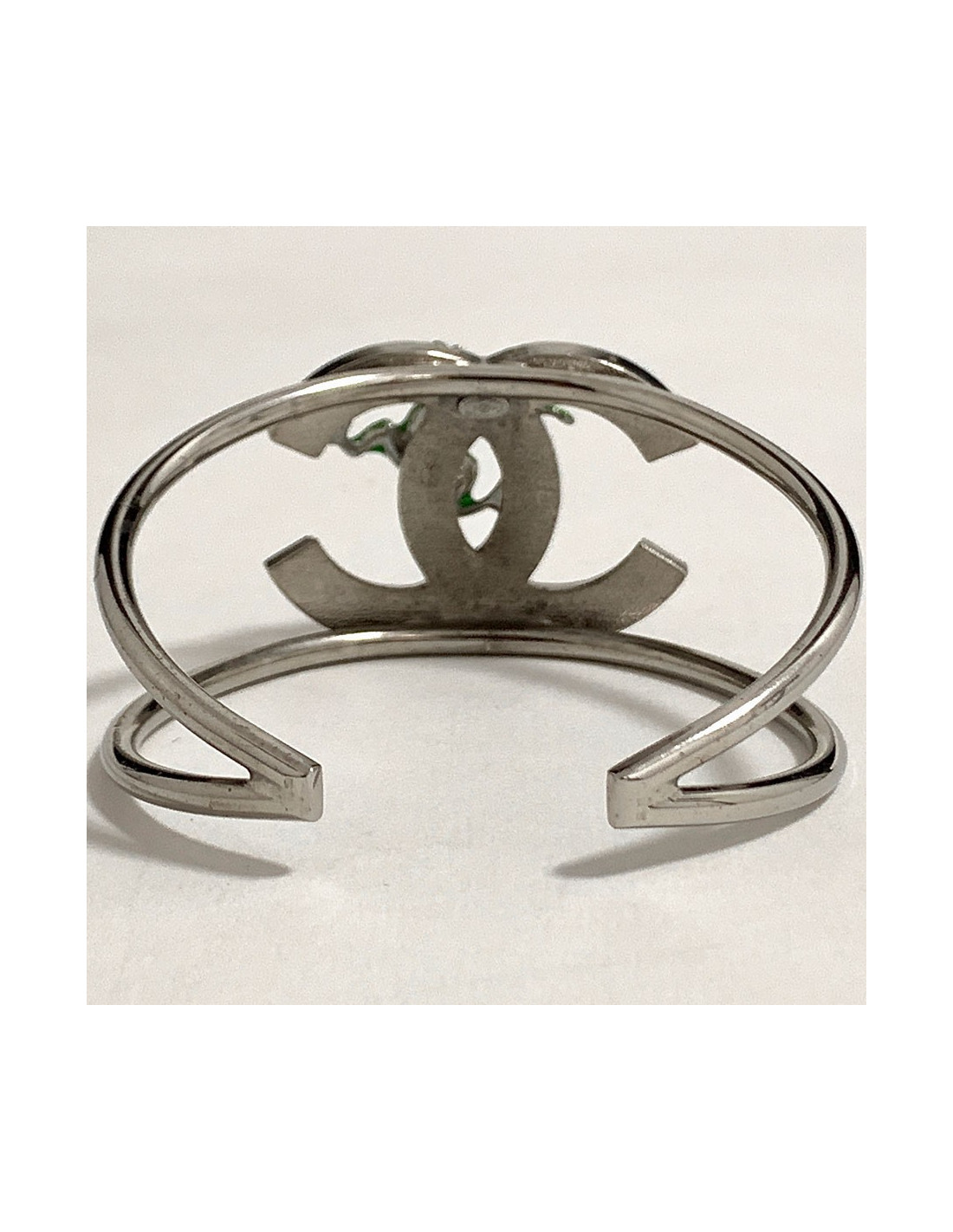 Last items in stock BRACELETS CHANEL flower bracelet CHANEL 25154 750.00 € CHANEL rigid silver flower bracelet Materials : metal, resin, fabric, rhinestonesColors : silver, multicolorCondition : very goodMeasurements : internal wrist circumference : 19 cm, width : 3,3 cmFrom the CHANEL runway Add to cart