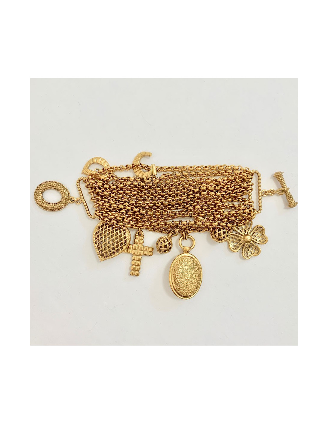 Last items in stock BRACELETS GOOSSENS Paris gilded metal bracelet size M GOOSSENS 18501 280.00 € GOOSSENS Paris gilded metal bracelet, size M Condition: very goodMaterial: metalColors: goldSize: MStamp: yesMeasurements: length: 18cmDetails: One rigid part and one chain part. Brand engraved on the back of the bracelet GOOSSENS Paris Advantage Valois Vintage Paris : delivered in a GOOSSENS PARIS dustbag Add to cart