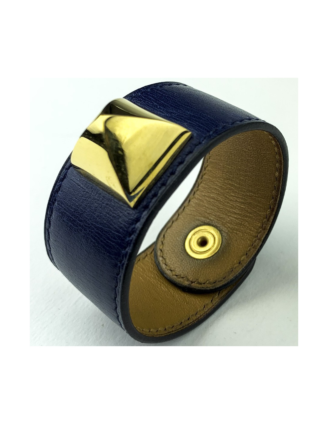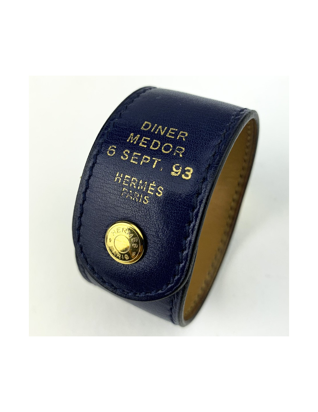 -151.00 € Last items in stock BRACELETS HERMES CDC cuff bracelet in blood color tadelakt calfskin HERMES 21231 699.00 € 850.00 € Hermès Médor cuff bracelet in blood color tadelakt calfskin. Palladium silver hardware. New condition. Stamp R in a square, year 2014. Stamp S from private sales. Made in France. Protection is still on the hardware. Dimensions: width 4 cm, total length 22 cm, clasp at the first hole 16 cm, middle 18 cm, last hole 19 cm. Will be delivered in a new,... Add to cart