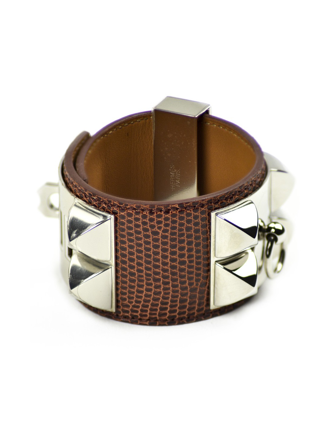 HERMES dog collar bracelet smooth Etrusque nilocus lezard leather