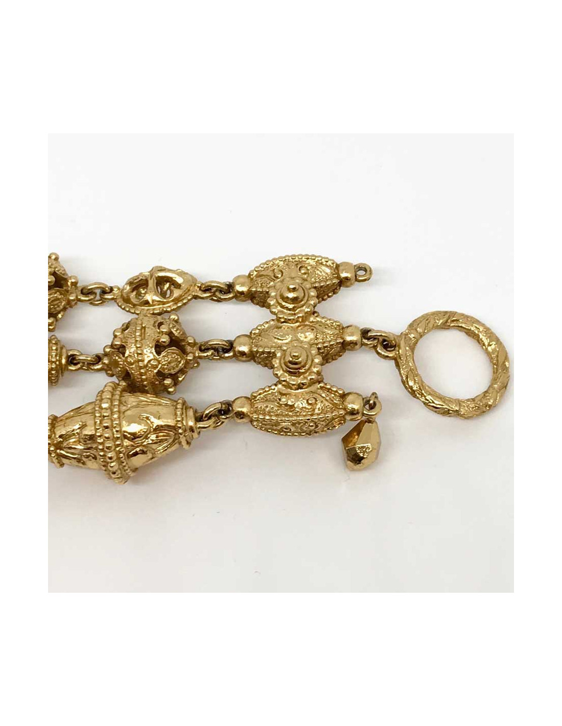 Sold BRACELETS CHANEL gilded metal braided chain bracelet CHANEL 30891 750.00 € CHANEL gilded braided chain bracelet Condition : very goodMade in FranceMaterials : metalColor : mat goldSigned: CHANEL Measurements: 19 x 1,5 cmYear : circa 2000 View