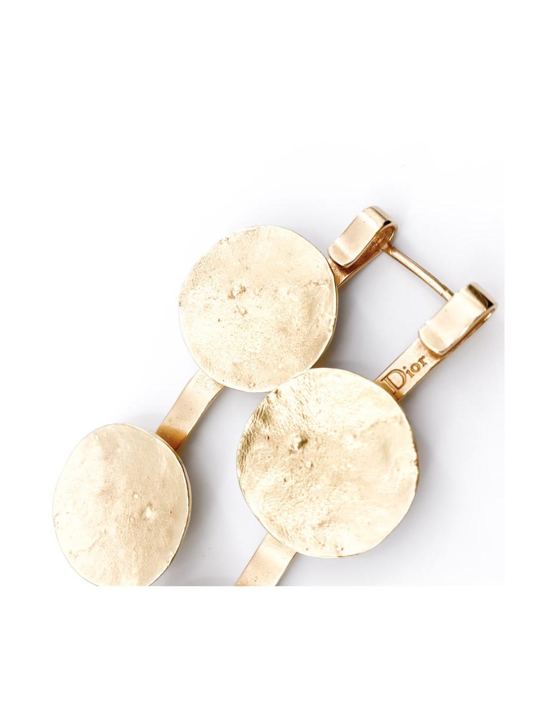 The jewel is signed by Maison DIOR. It is presented under a double row of metal pieces which ends with the deployment of a flower in metal gilded with fine gold.