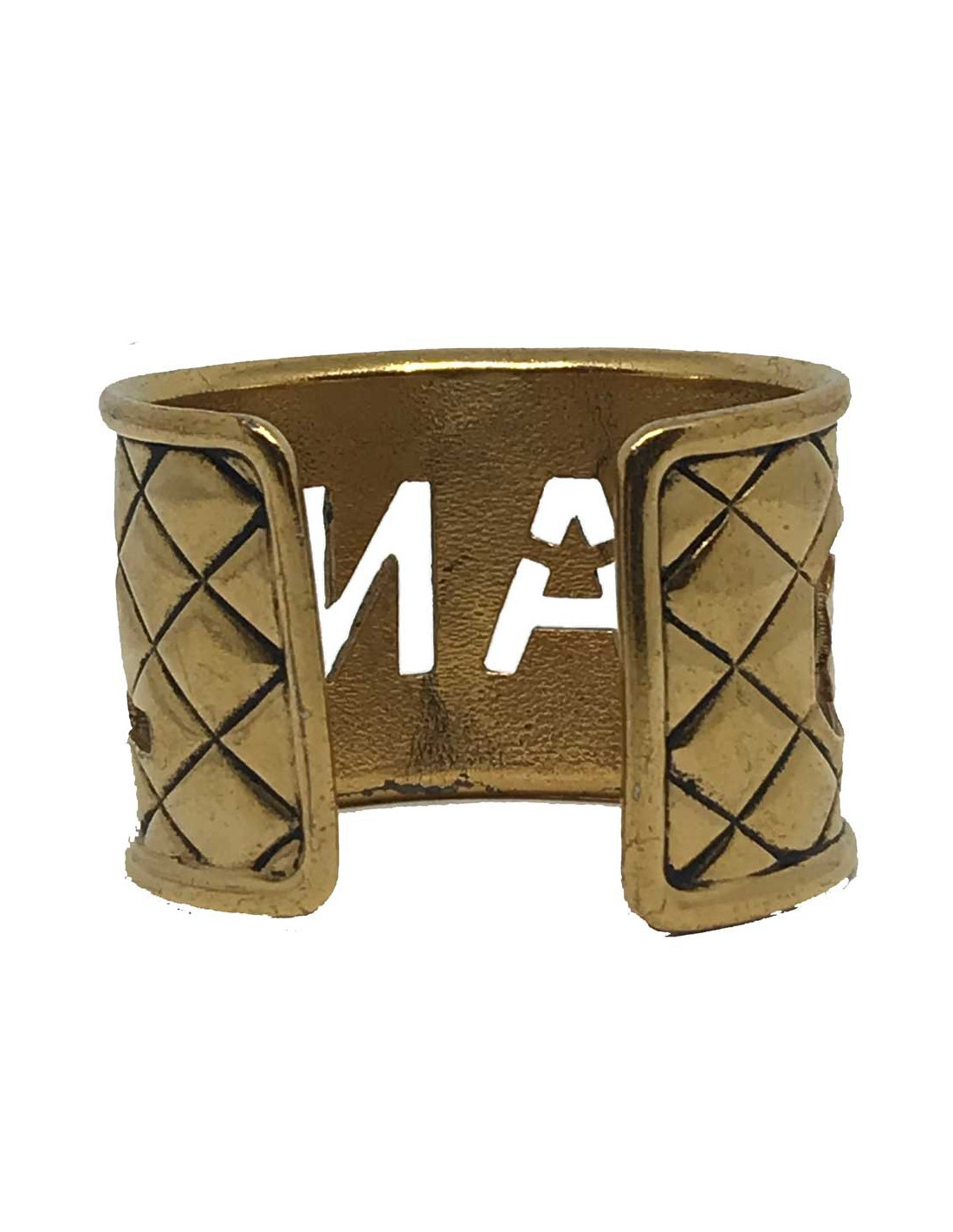 Last items in stock BRACELETS CHANEL Cruise collection gold cuff CHANEL 31315 1,250.00 € CHANEL Cruise collection gold cuff Condition : never wornMade in ItalyMaterial : metalColor: goldStamp : yesMeasurements : wrist circumference 18 cm, size M, height: 6 cm.Year : Cruise 2018 Advantage Valois Vintage Paris : comes in its CHANEL box Add to cart