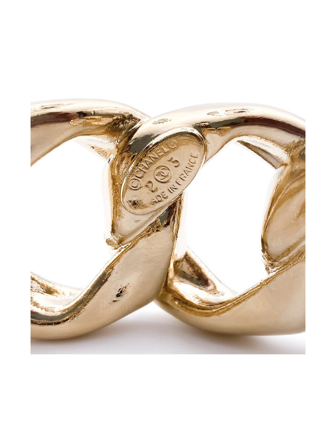 Last items in stock BRACELETS CHANEL vintage cuff bracelet in gilt metal braided chain CHANEL 23685 1,890.00 € Chanel vintage cuff bracelet in golden metal braided chain. In good condition. Presence of slight invisible traces of oxidation (see photo) Made in France. Dimensions: width: 3.5 cm, wrist circumference (inside): 17.5 cm Will be delivered in a new, non-original dust bag Number: 4117 inscribed inside Add to cart