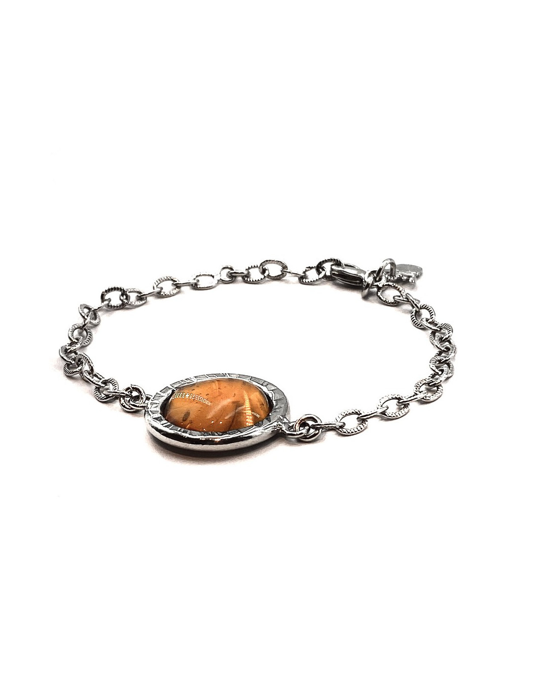Last items in stock BRACELETS MARGUERITE DE VALOIS large molten glass cabochons bracelet MARGUERITE DE VALOIS 14877 300.00 € MARGUERITE DE VALOIS large molten glass cabochons bracelet Made in FranceCondition: very goodMaterials: molten glass, metalColors: white, amber, honey, grey, red, transparent, goldHardware: gold plated metalMeasurements: total length (adjustable): 20cm, width: 1.8cm + pendantsDetails: Entirely handcrafted in France by jewelers who have worked in the past... Add to cart