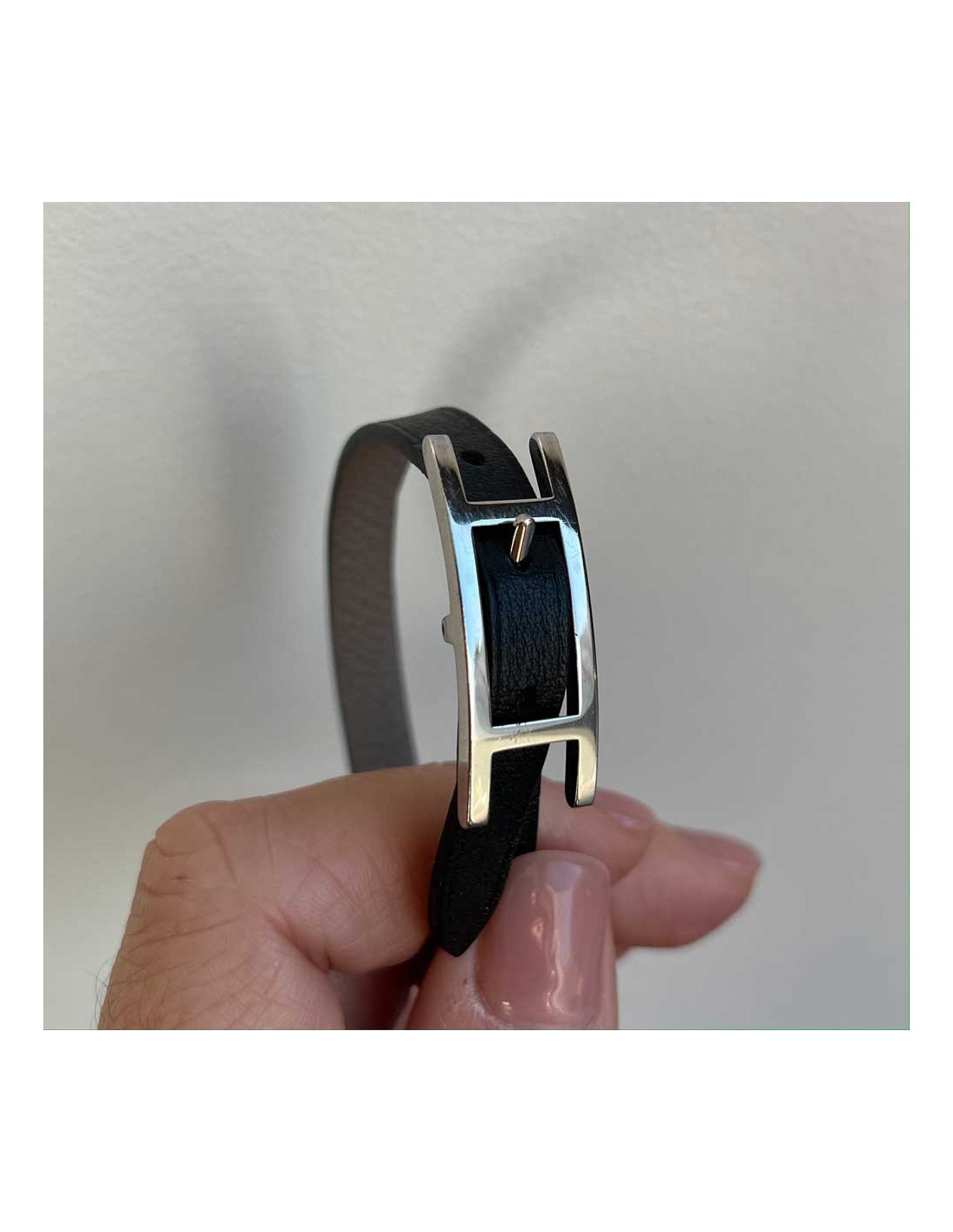 Last items in stock BRACELETS HERMES Eclipse sterling silver 925/1000 bracelet HERMES 35097 1,900.00 € HERMES Eclipse sterling silver 925/1000 bracelet Condition : very goodMade in France Collection : EclipseMaterial: sterling silver 925/1000Color: silverSize : S/MMeasurements: height 4 cm, maximum wrist circumference 17 cmHardware : silver (micro-scratches)Stamp : yesDetails : silver flat band bracelet with “H” and two perforated anchor chain links Add to cart