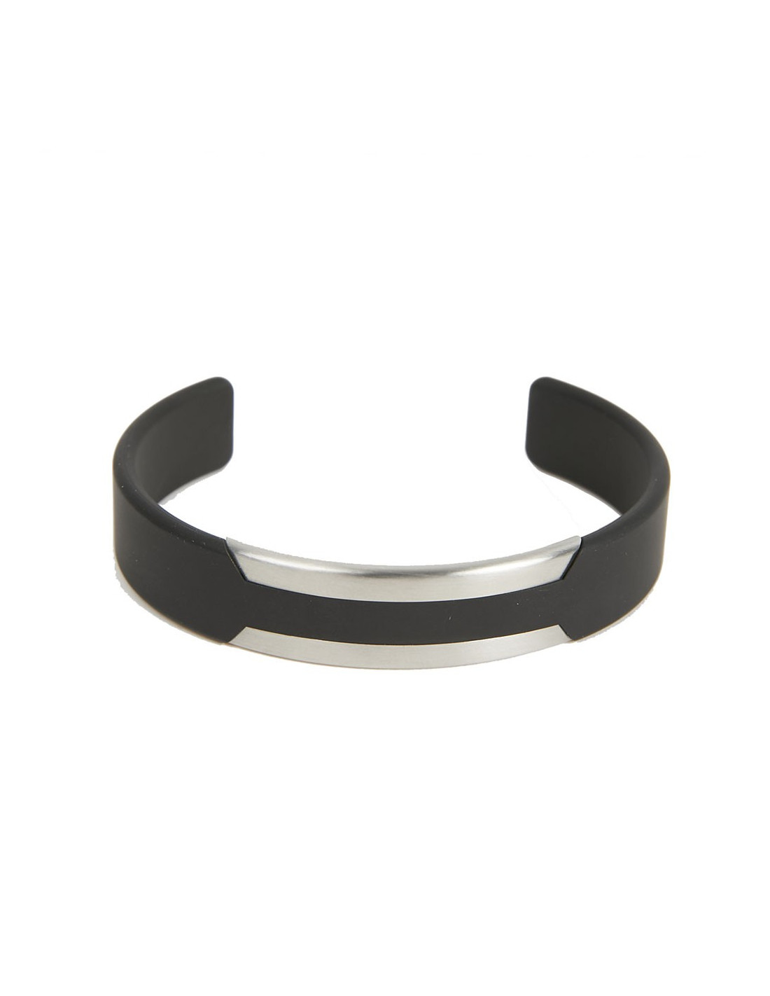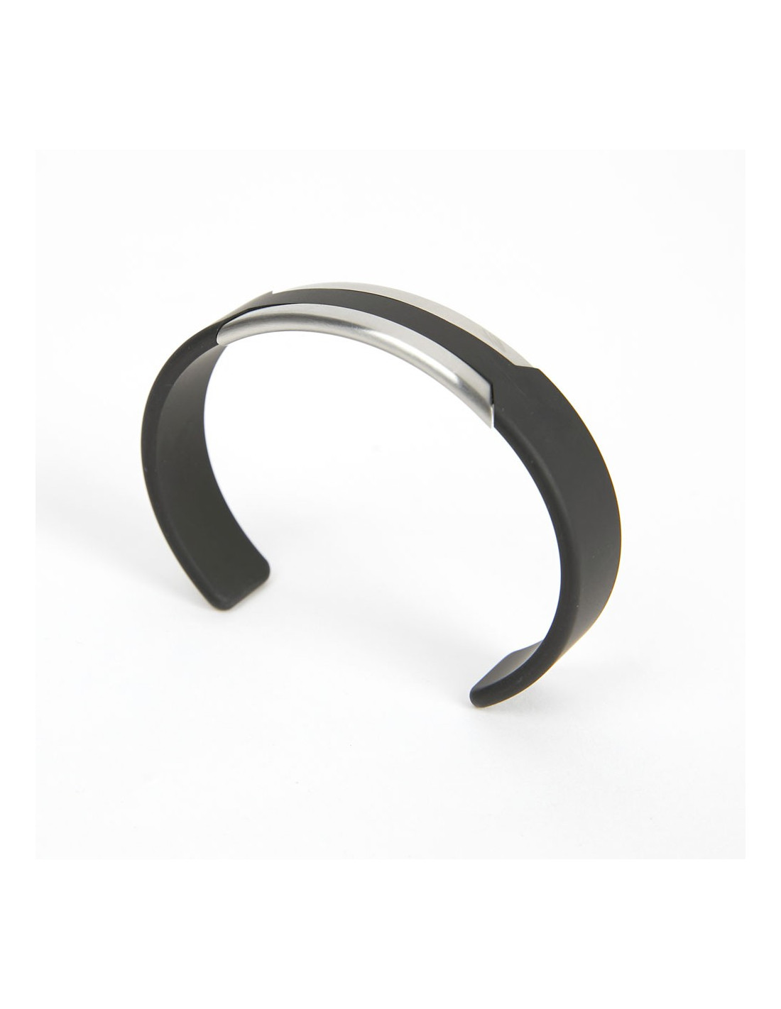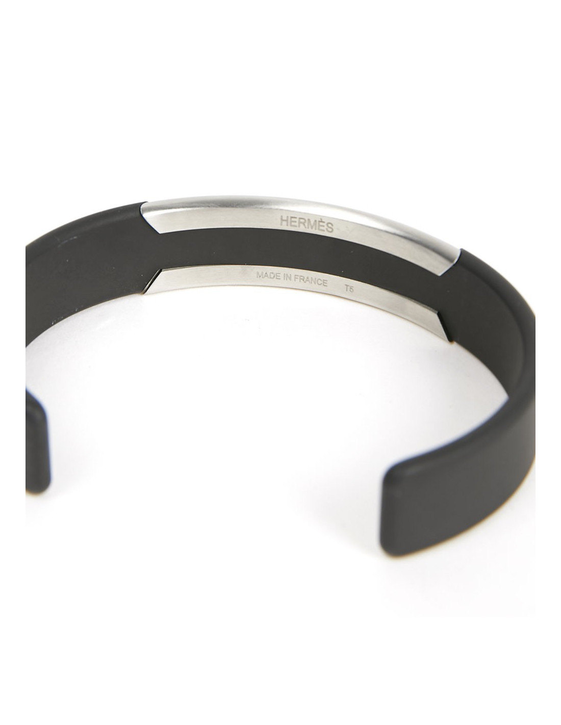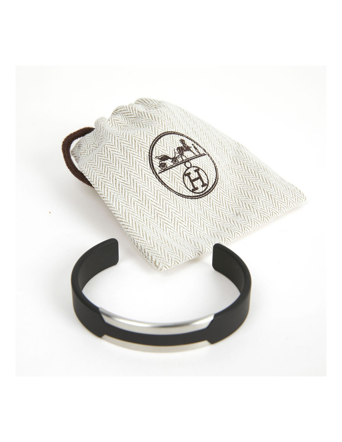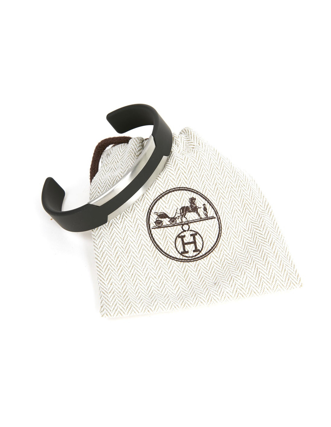 Two-tone Hermès bracelet from a recent collection. It is matte black and brushed silver metal. Stamped "Hermès Made in France Size 5", it has never been worn.