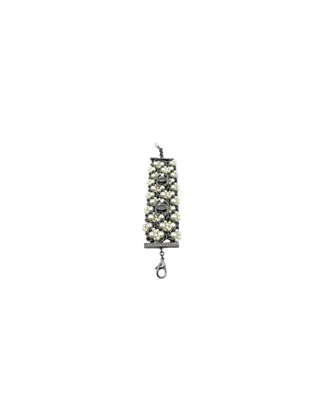 Last items in stock BRACELETS CHANEL flower bracelet CHANEL 25156 750.00 € CHANEL couture flower bracelet Materials: metal, resin, fabric, rhinestonesColors : silver, multicolorCondition : very goodMeasurements : internal wrist circumference : 19 cm, width : 3,3 cmFrom a CHANEL runwayAdvantage Valois Vintage Paris: comes in its CHANEL box Add to cart