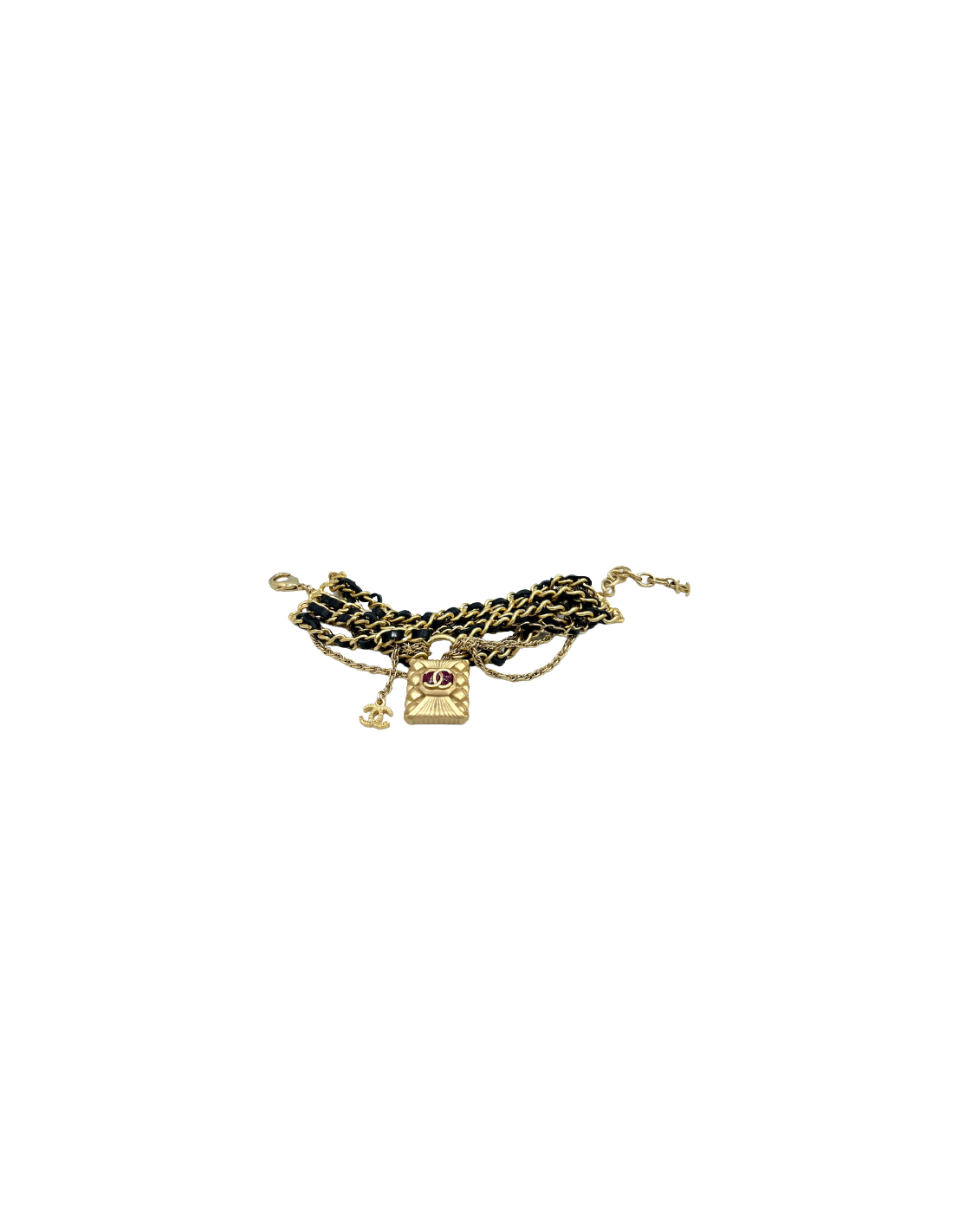 Last items in stock BRACELETS Unbranded leather and 18 k gold bracelet AUTRES MARQUES 16575 880.00 € Unbranded leather and 18 k gold bracelet Condition: good (the gold parts have patina)Matrials: leather, 18 carats goldColors: brown, goldMeasurements: length: 16cm, height: 1cmDetails: Lovely rigid bracelet in aged brown leather with beige saddle stitching. The corners are in solid 18-carat gold, set with 2 aged coins, in the spirit of Bulgari jewelry. It... Add to cart