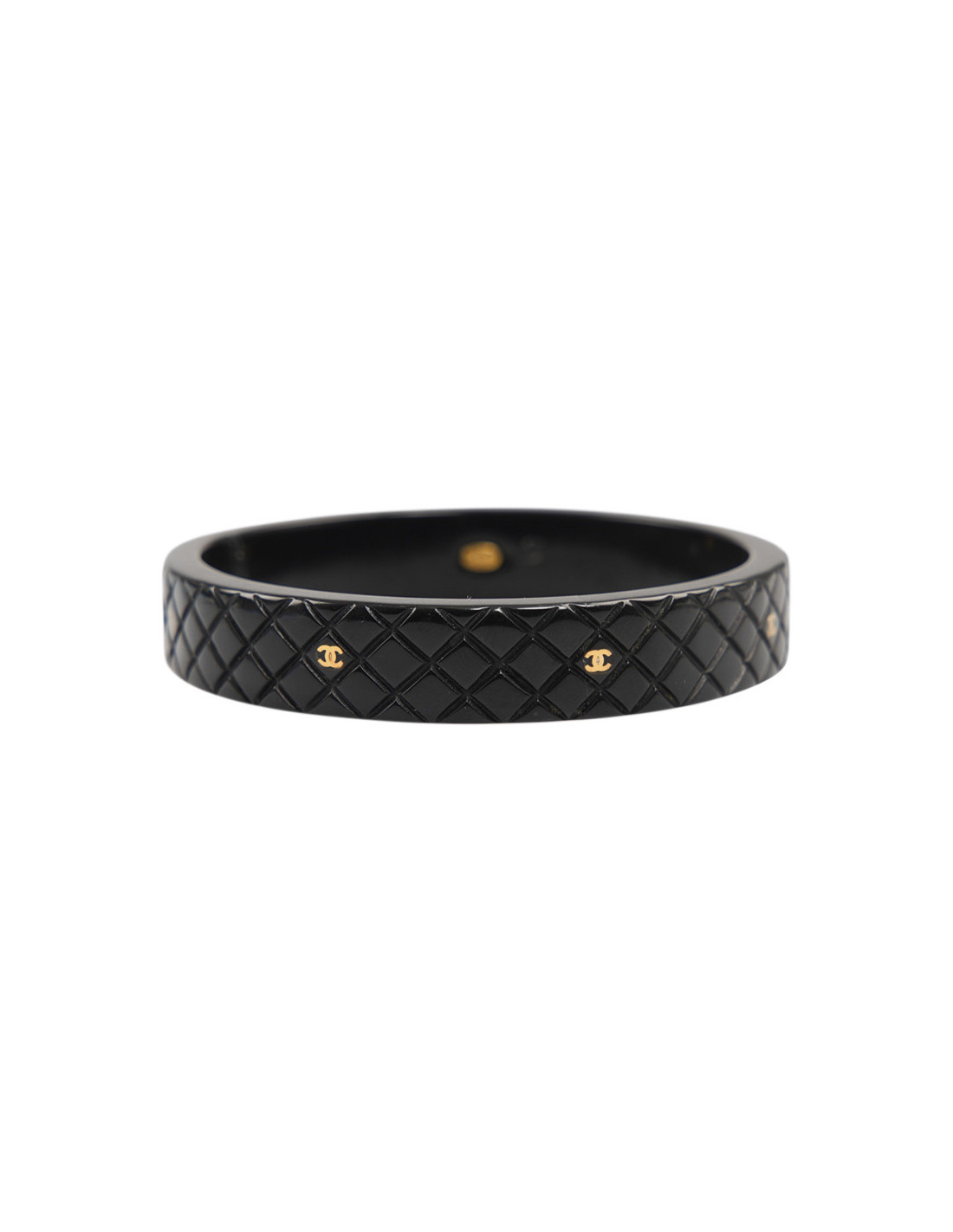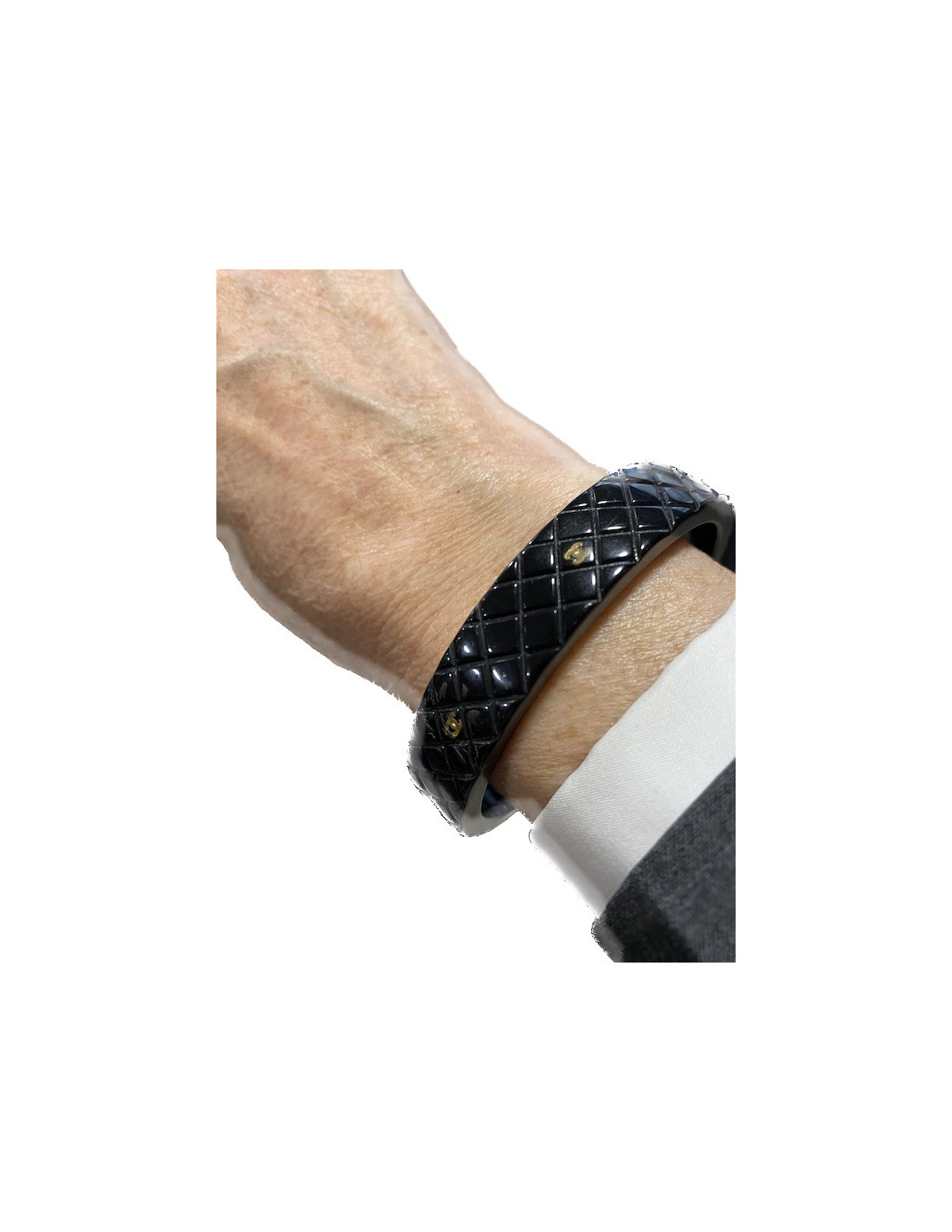 CHANEL vintage quilted black resin bracelet with gold CC Spring 2002