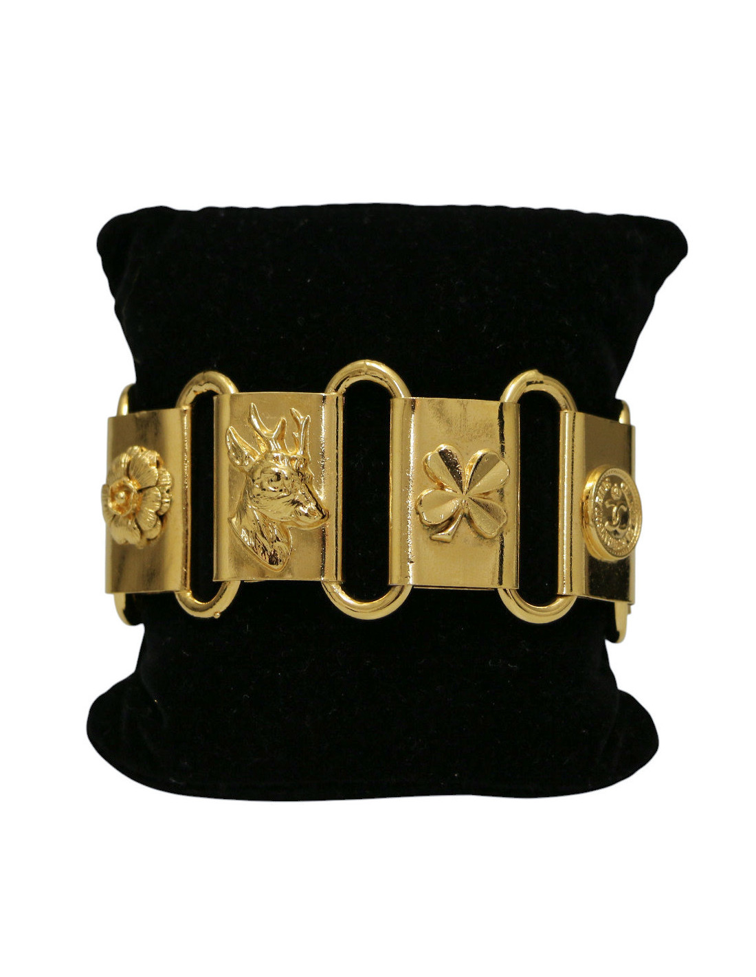Last items in stock BRACELETS CHANEL Cruise collection gold cuff CHANEL 31315 1,250.00 € CHANEL Cruise collection gold cuff Condition : never wornMade in ItalyMaterial : metalColor: goldStamp : yesMeasurements : wrist circumference 18 cm, size M, height: 6 cm.Year : Cruise 2018 Advantage Valois Vintage Paris : comes in its CHANEL box Add to cart