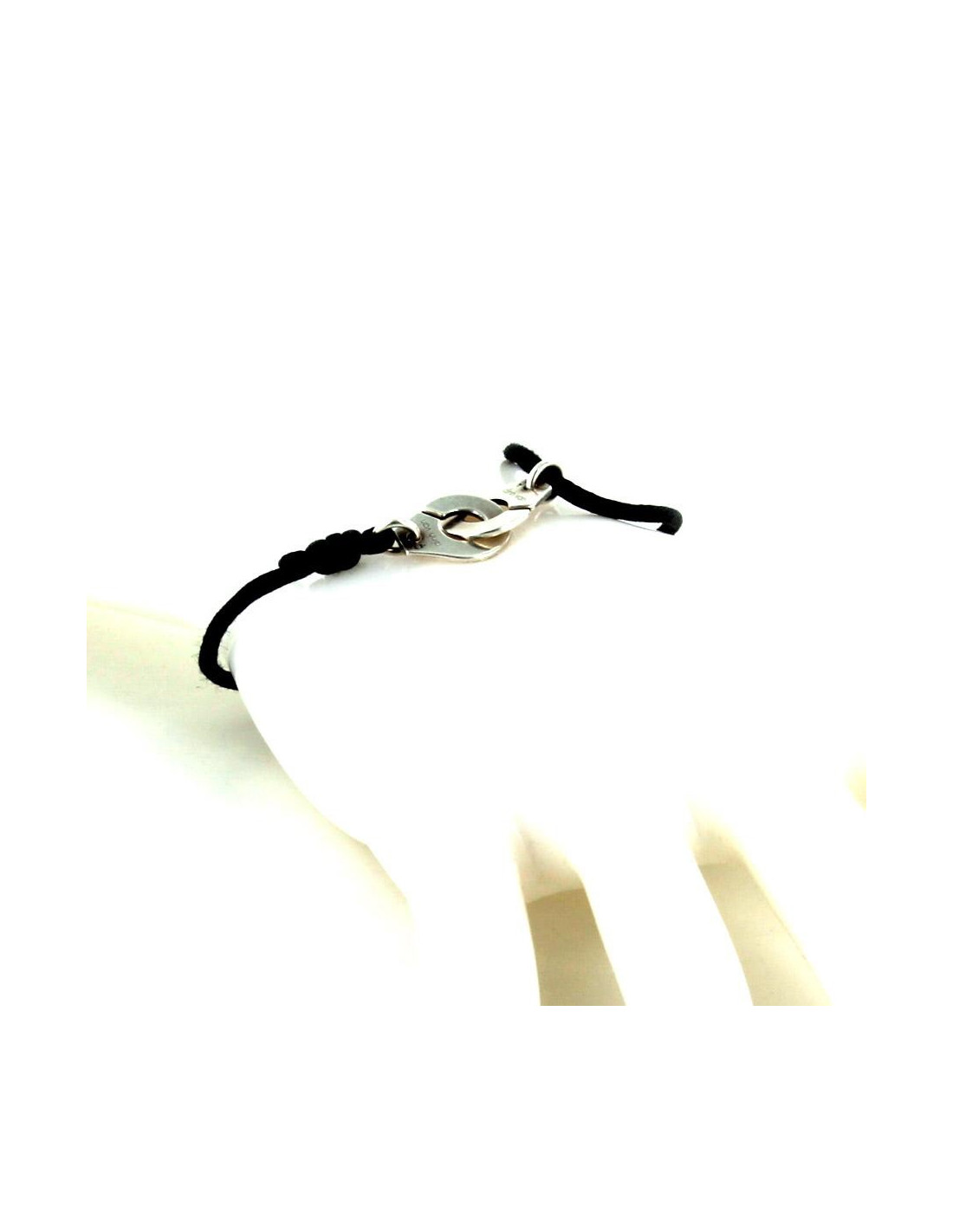 Handcuffs bracelet white gold Dinh Van on black cord.