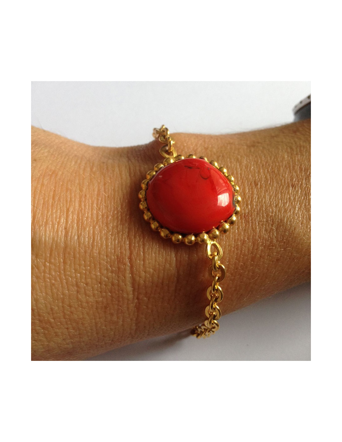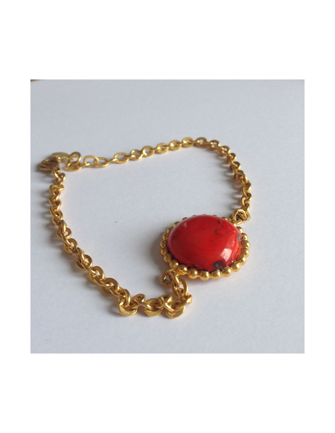 Opaque Marguerite de Valois red round cabochon bracelet and gold fine gold metal.