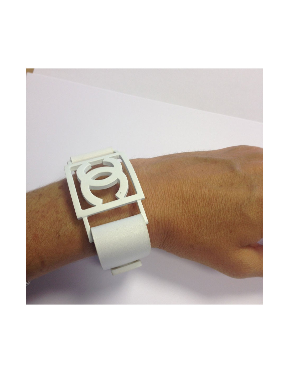 Bracelet CC and White Leather CHANEL