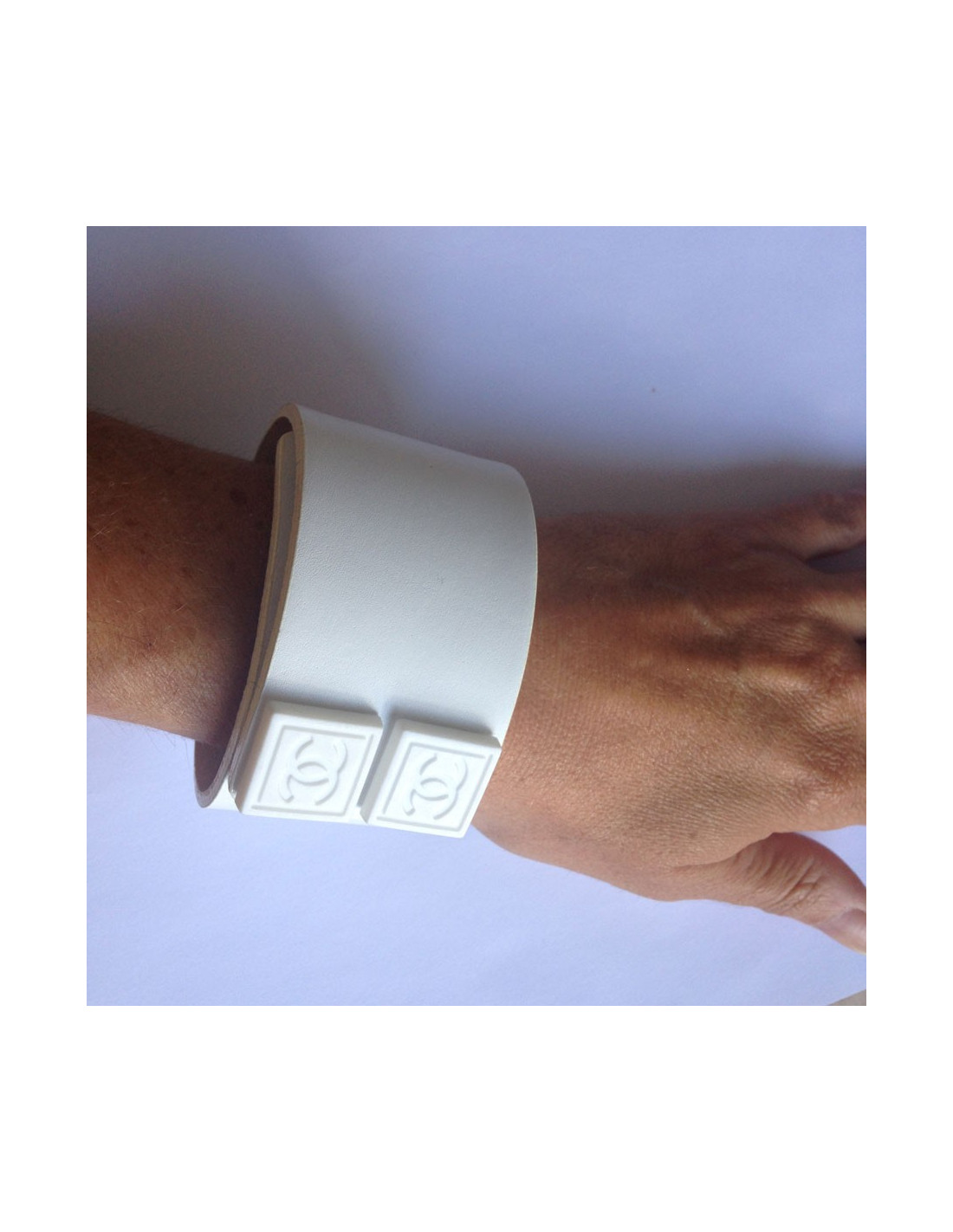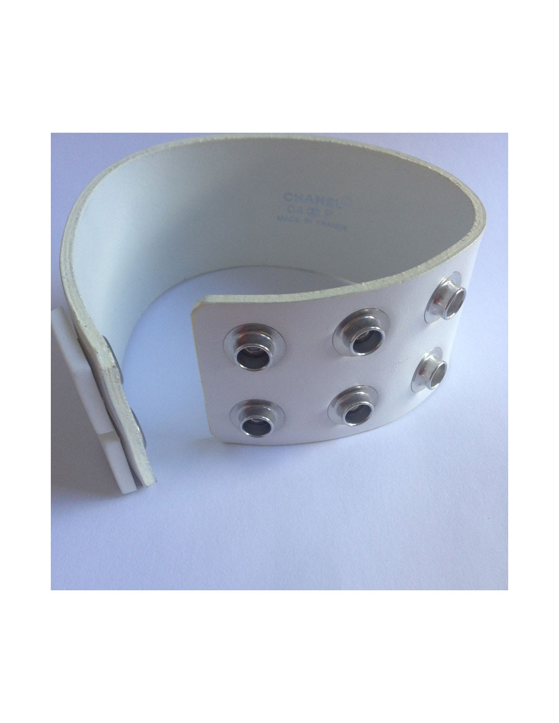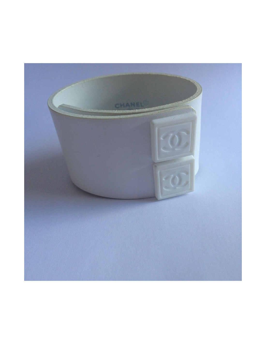 Wide bracelet Chanel White leather, double buttons pressures as a closure.