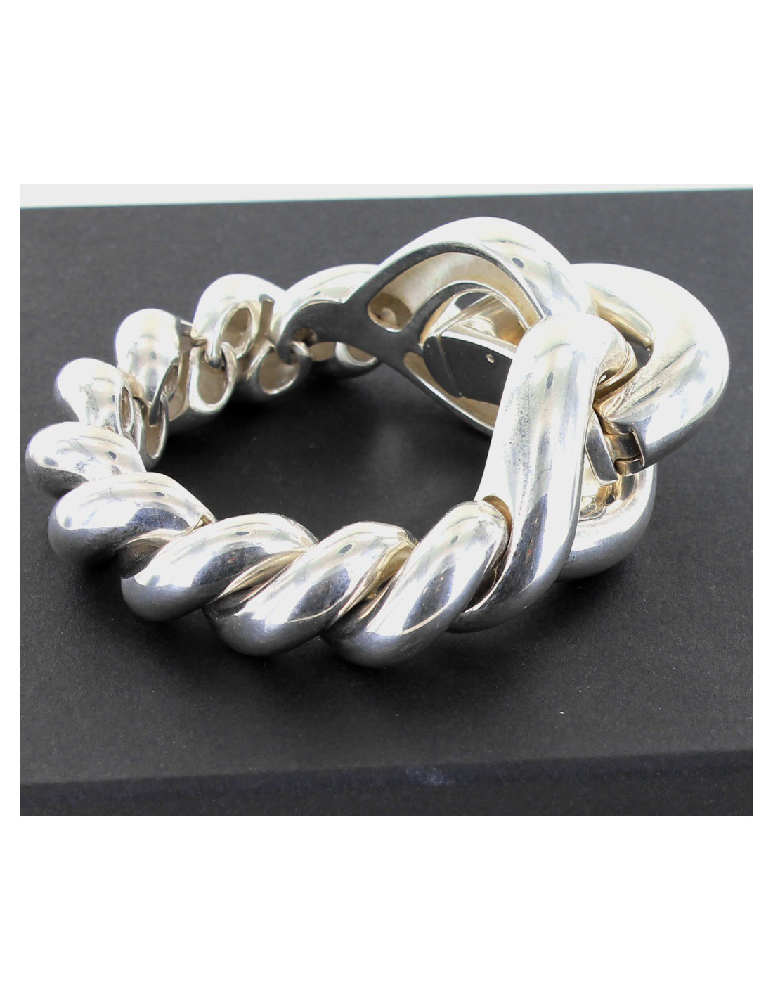 Last items in stock BRACELETS HERMES Eclipse sterling silver 925/1000 bracelet HERMES 35097 1,900.00 € HERMES Eclipse sterling silver 925/1000 bracelet Condition : very goodMade in France Collection : EclipseMaterial: sterling silver 925/1000Color: silverSize : S/MMeasurements: height 4 cm, maximum wrist circumference 17 cmHardware : silver (micro-scratches)Stamp : yesDetails : silver flat band bracelet with “H” and two perforated anchor chain links Add to cart
