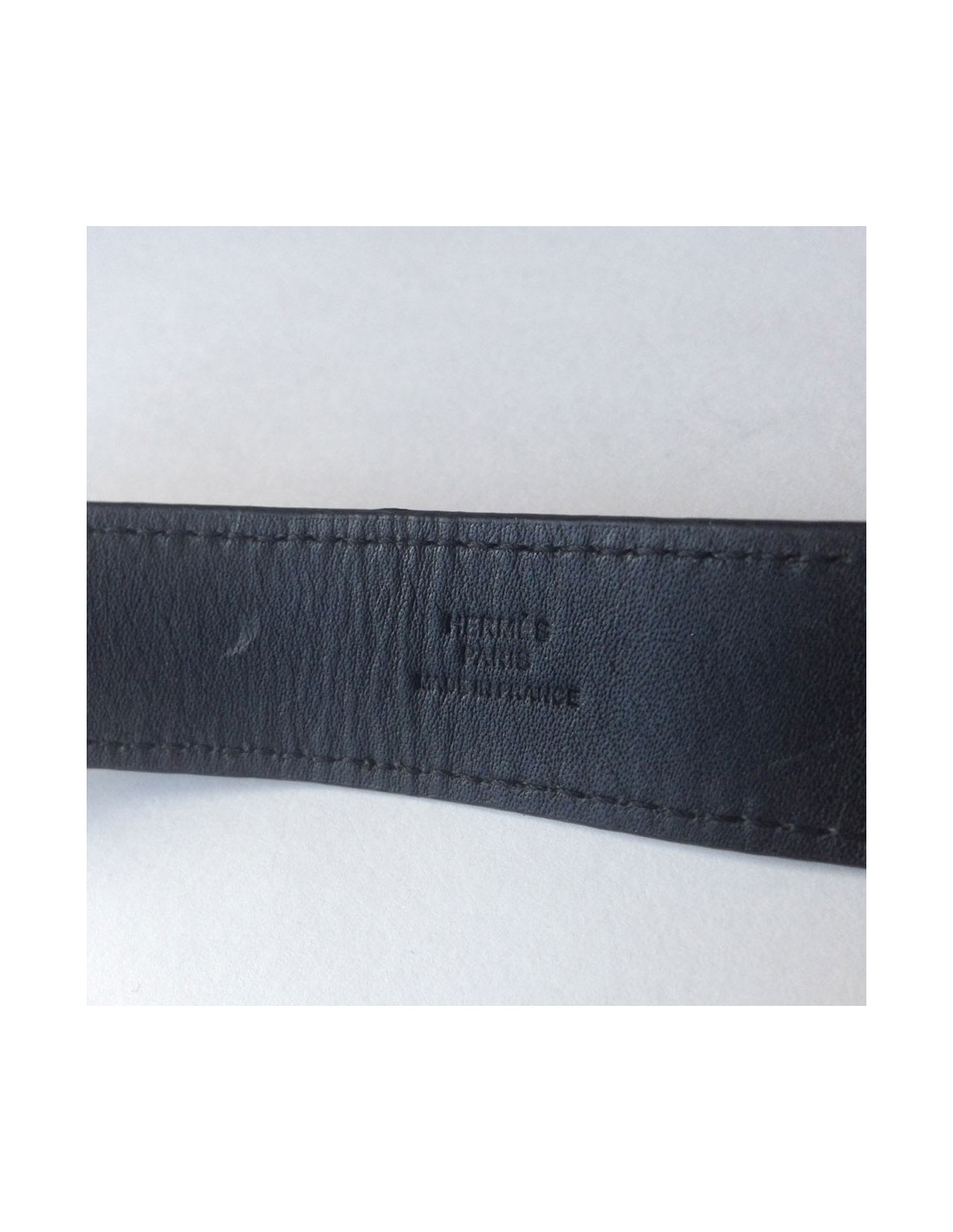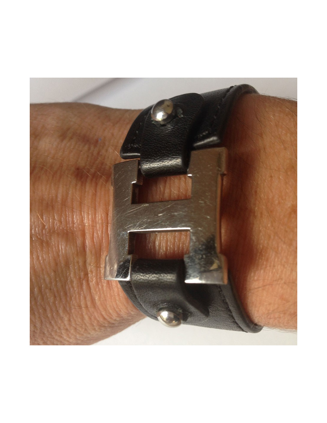 HERMES black leather and "H" Palladium bracelet