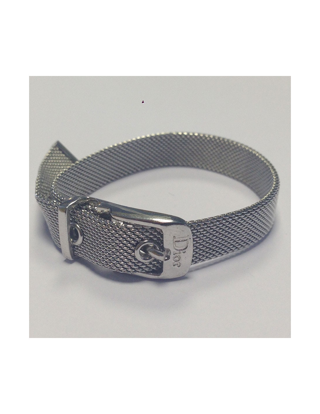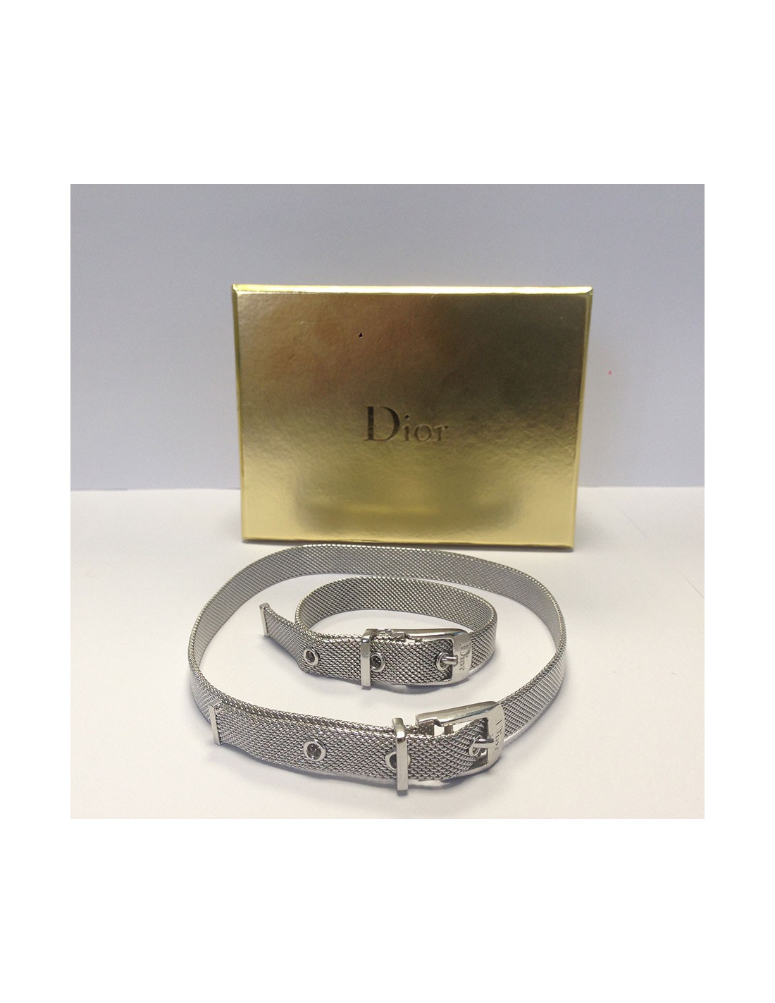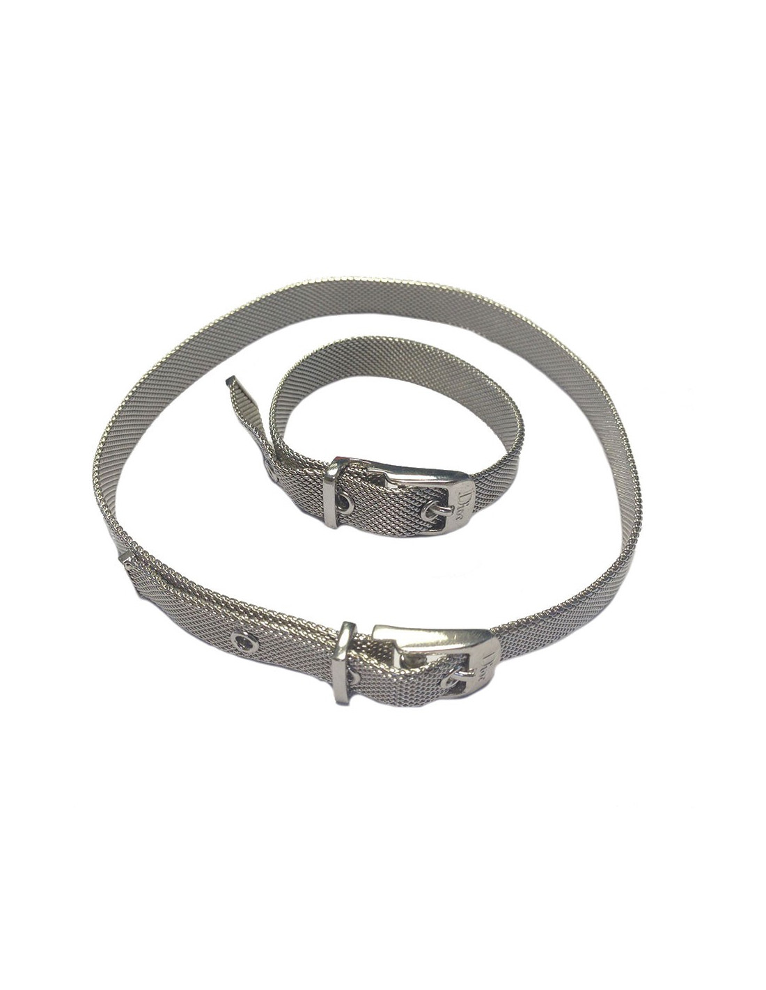 Dior set : necklace and bracelet, in silver metal. Belt clasp with notches. In very good condition.