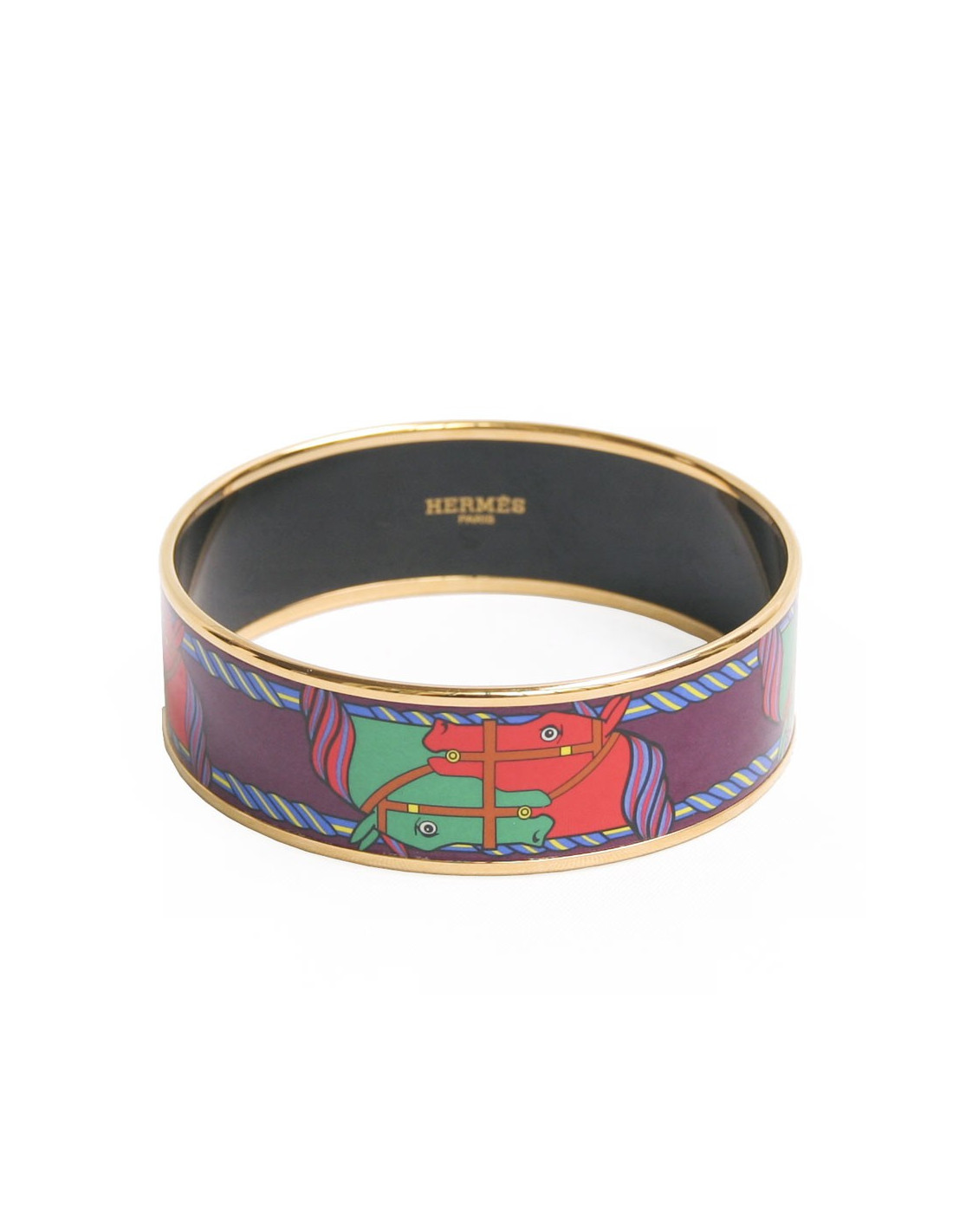 Wide bracelet quadrille multicolored Hermes in gold enamel, bracelet colors are green, blue, red, yellow and eggplant, the bracelet is Palladium saturates 70. Shop bracelet price is 445 euros. Very good condition