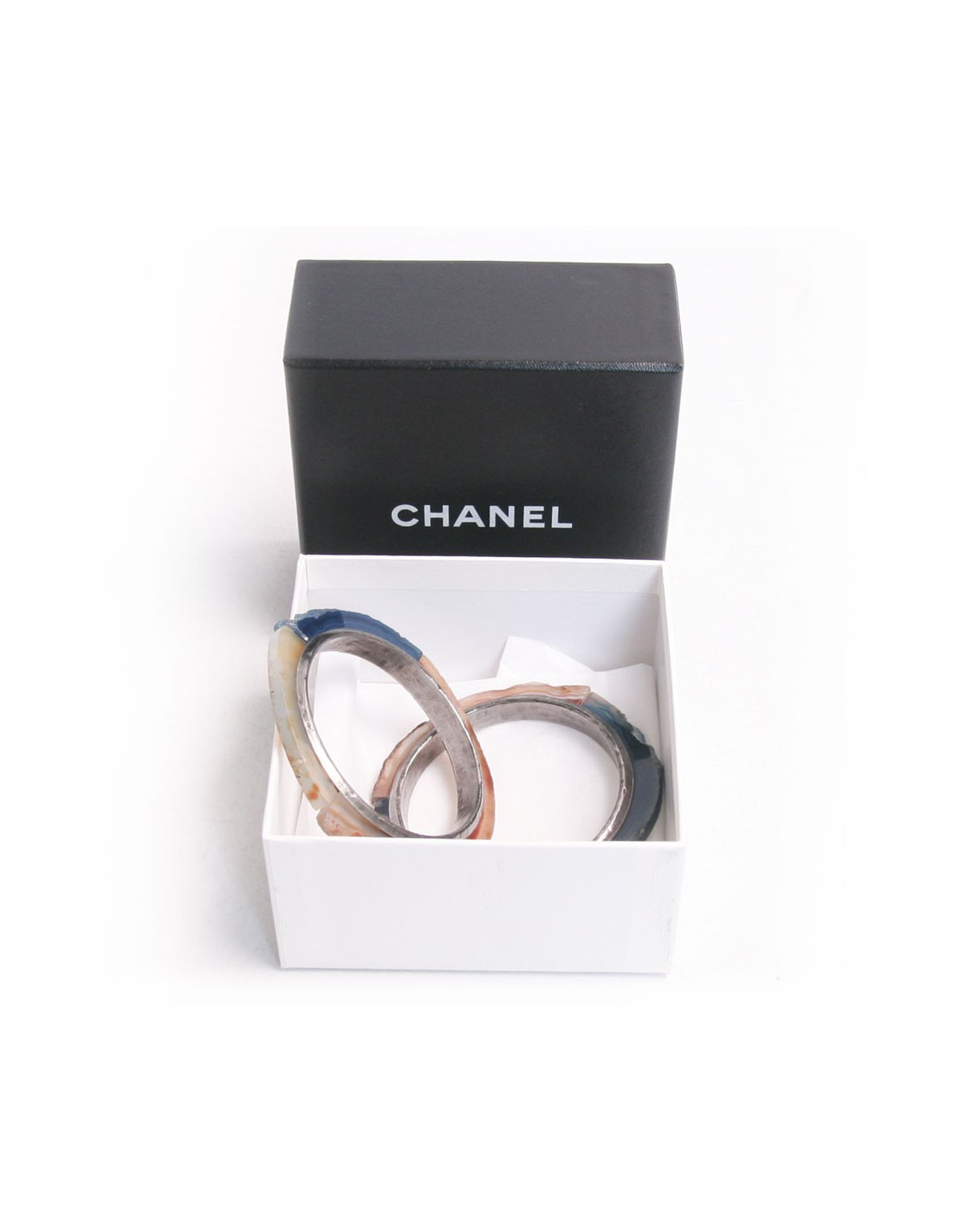 Hard stones Chanel bracelets, color: blue, beige, Brown. The Interior is hammered metal acronym Chanel.