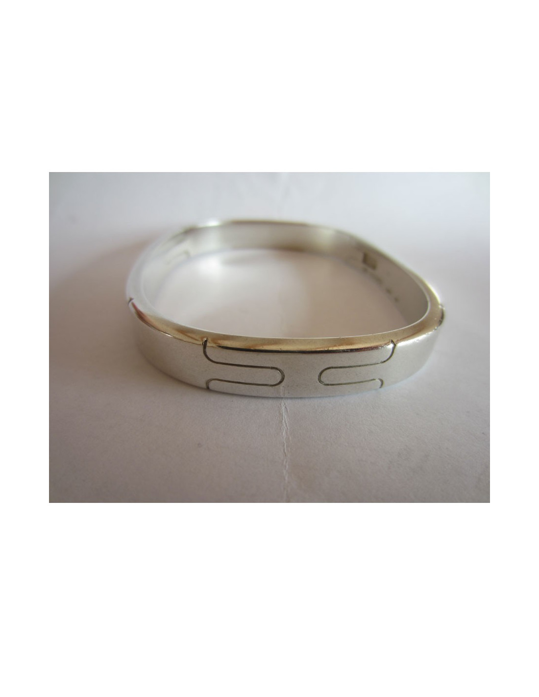 This bracelet has an egg shape, has 4 designs "H" which one bronze, the rest of the bracelet is silver massif.article from sales