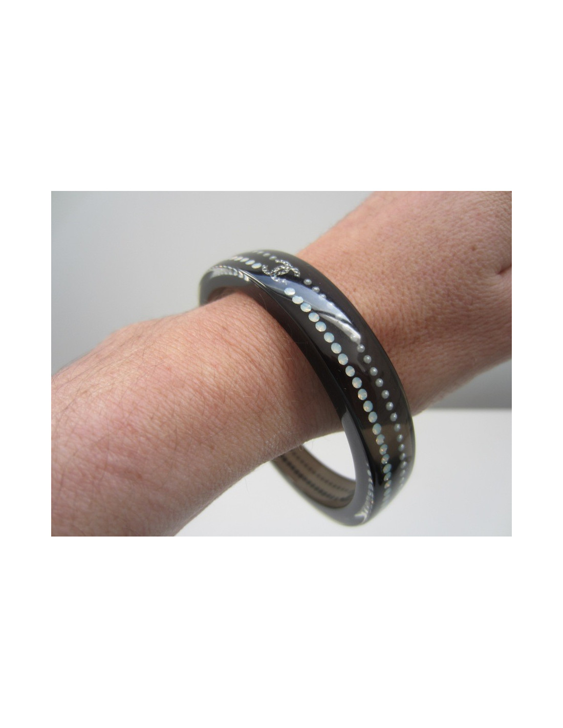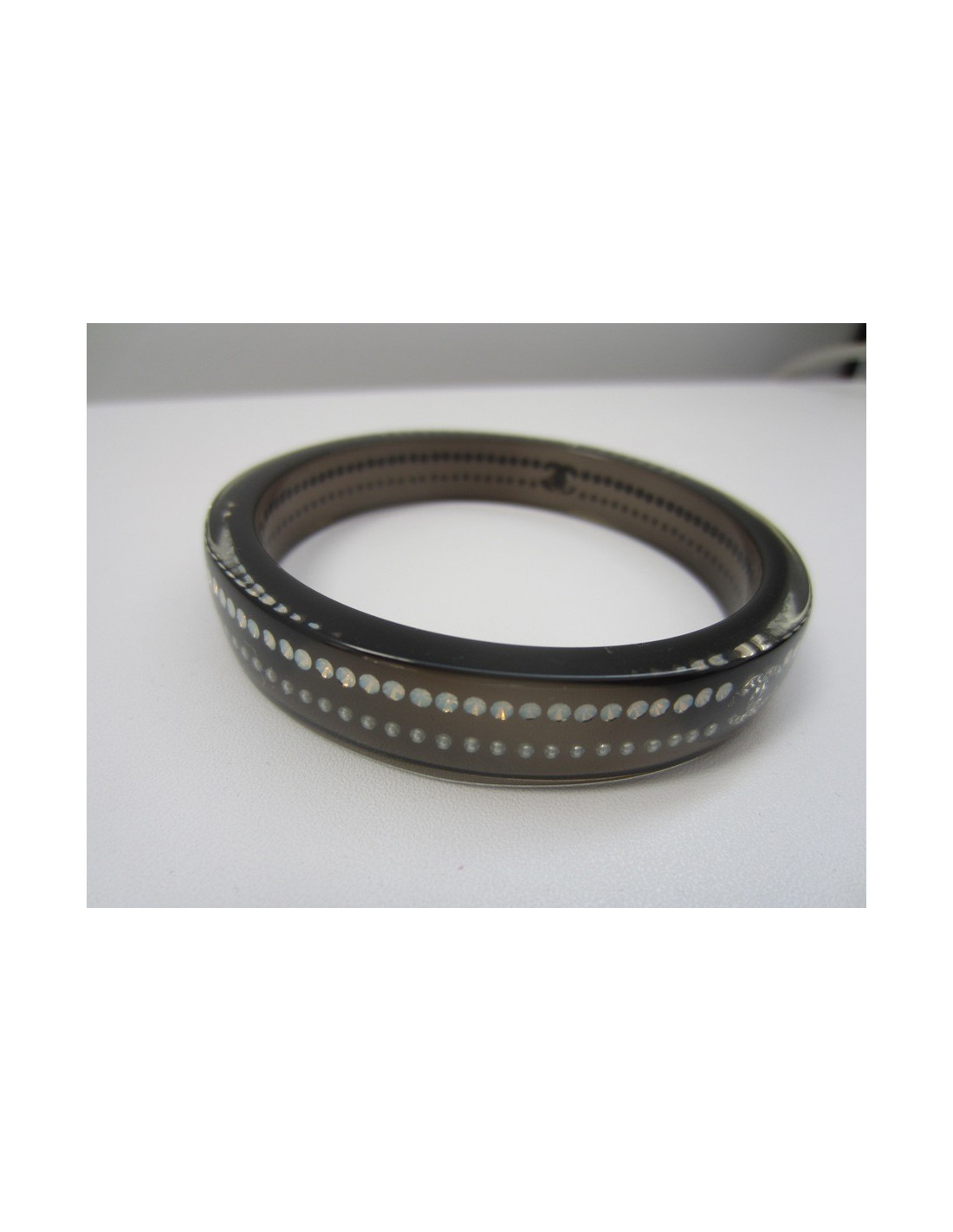 Sublime bracelet black plexiglass, incrustations of CC in rhinestone, small beads faceted stone and pearly white. (to report: lozenge Chanel peeled off inside the bracelet)