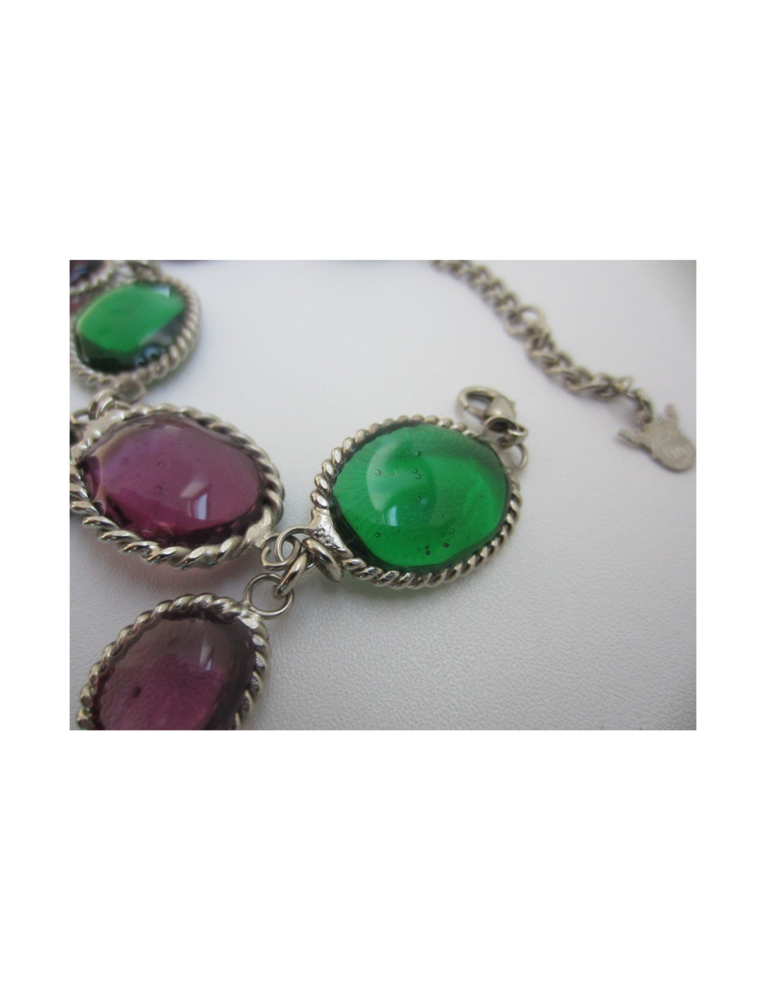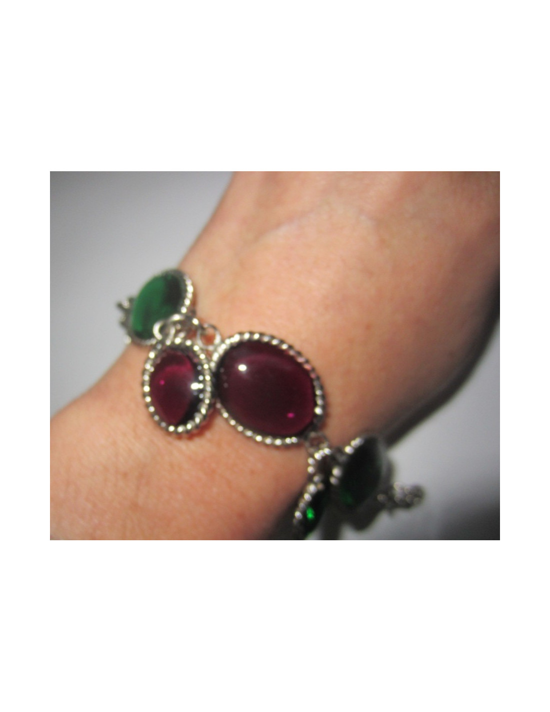 Beautiful bracelet "Drops of water" of the House Marguerite of Valois in silver metal and glass Amethyst & bottle green.