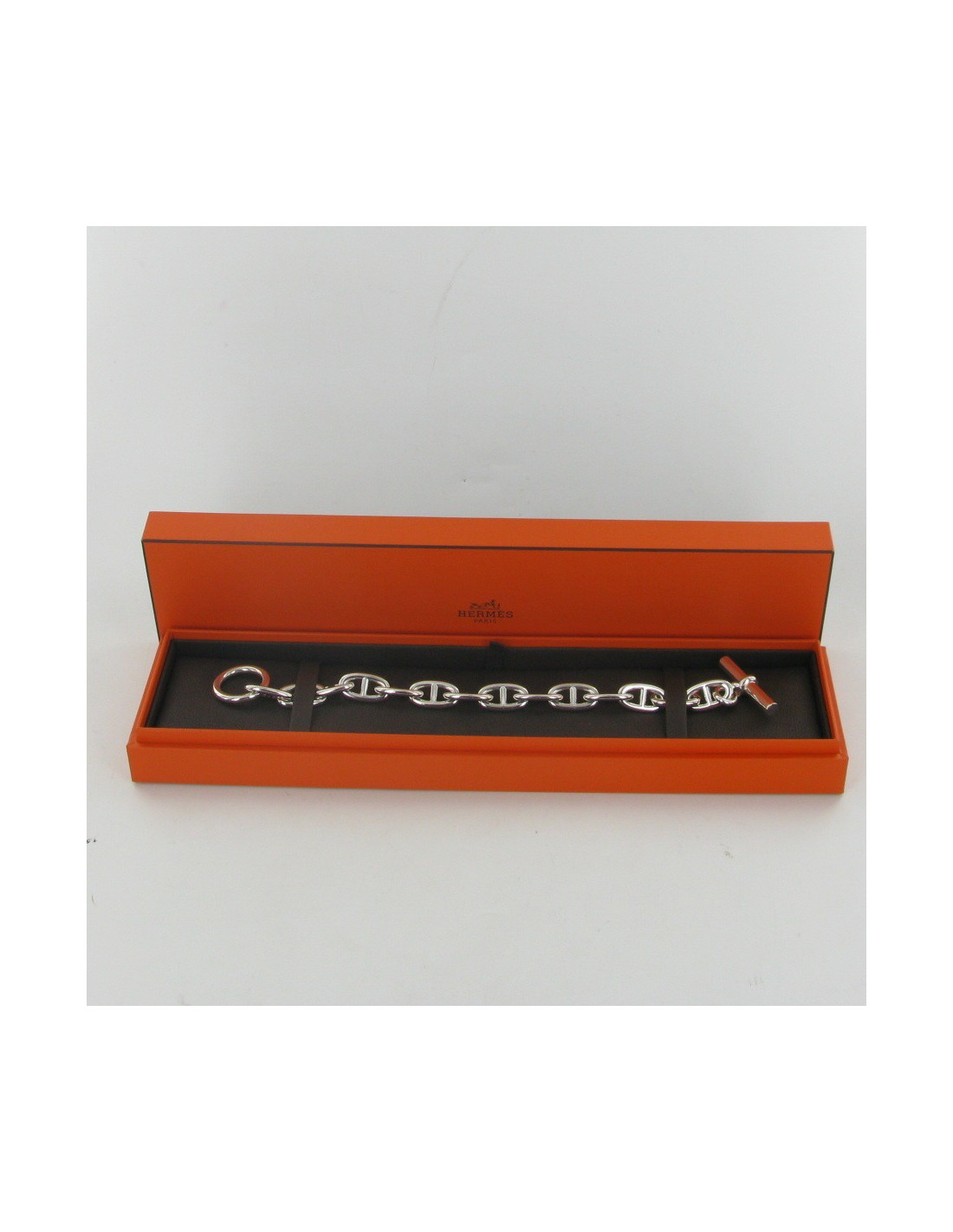 -151.00 € Last items in stock BRACELETS HERMES CDC cuff bracelet in blood color tadelakt calfskin HERMES 21231 699.00 € 850.00 € Hermès Médor cuff bracelet in blood color tadelakt calfskin. Palladium silver hardware. New condition. Stamp R in a square, year 2014. Stamp S from private sales. Made in France. Protection is still on the hardware. Dimensions: width 4 cm, total length 22 cm, clasp at the first hole 16 cm, middle 18 cm, last hole 19 cm. Will be delivered in a new,... Add to cart