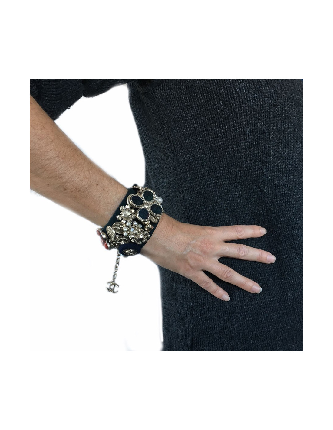 CHANEL cuff "Paris-Edinburgh" in leather and failure of blue velvet Navy