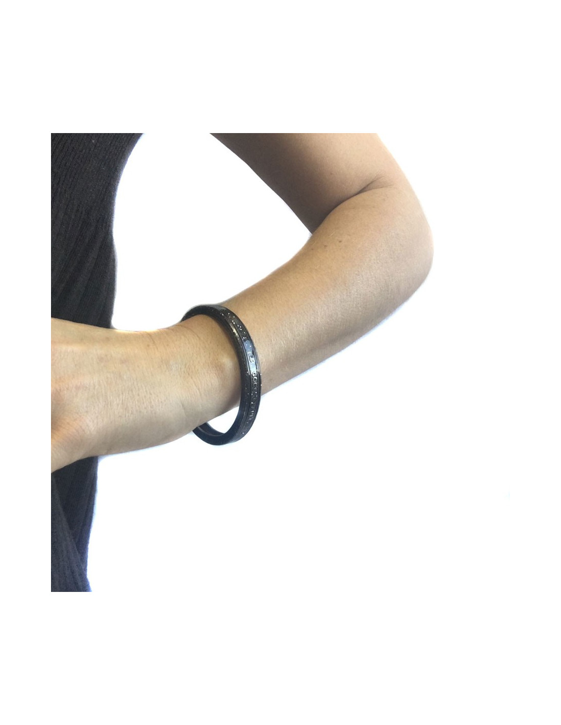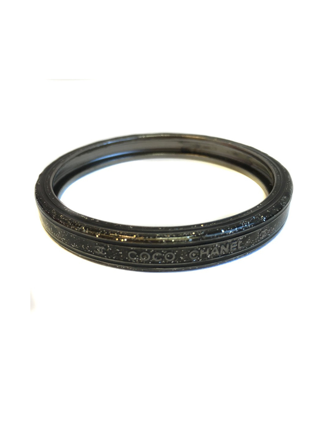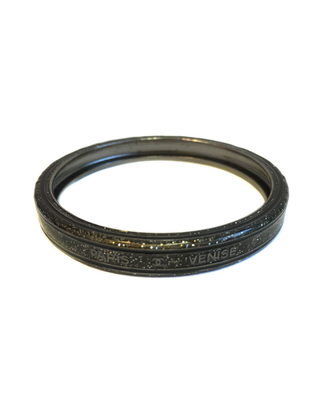 Superb bracelet CHANEL Paris-Venice collection in glittery ruthenium. Inscriptions in relief: Paris-Venice and Coco CHANEL as well as a small CC.