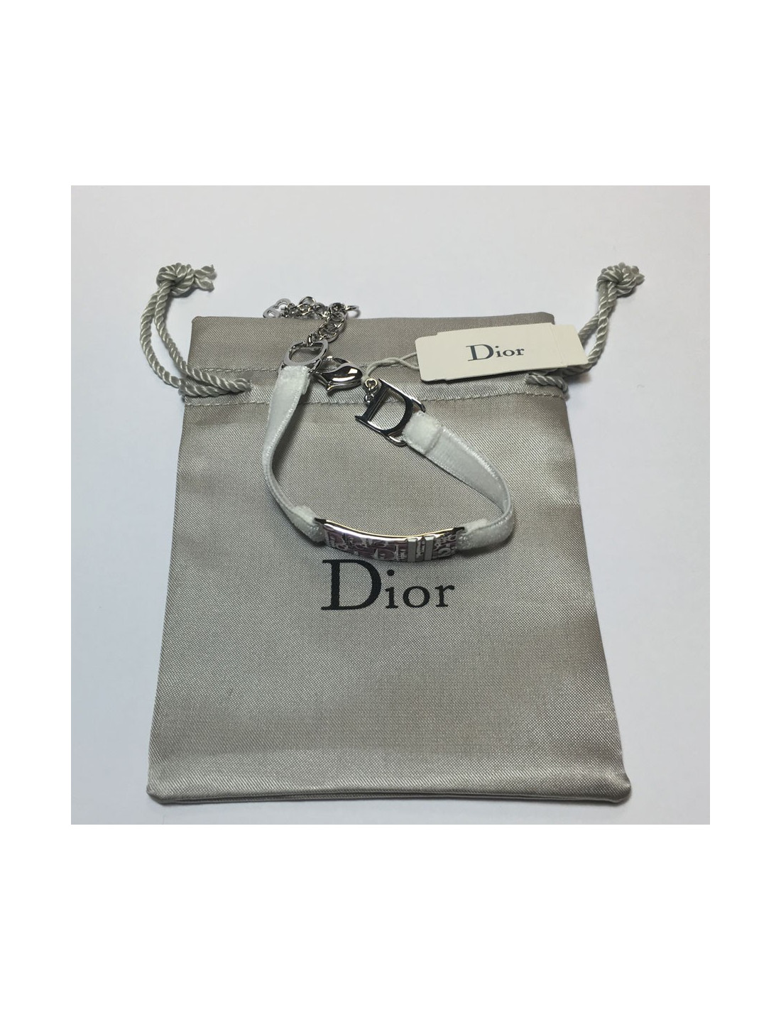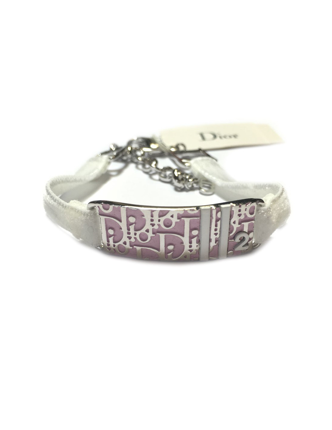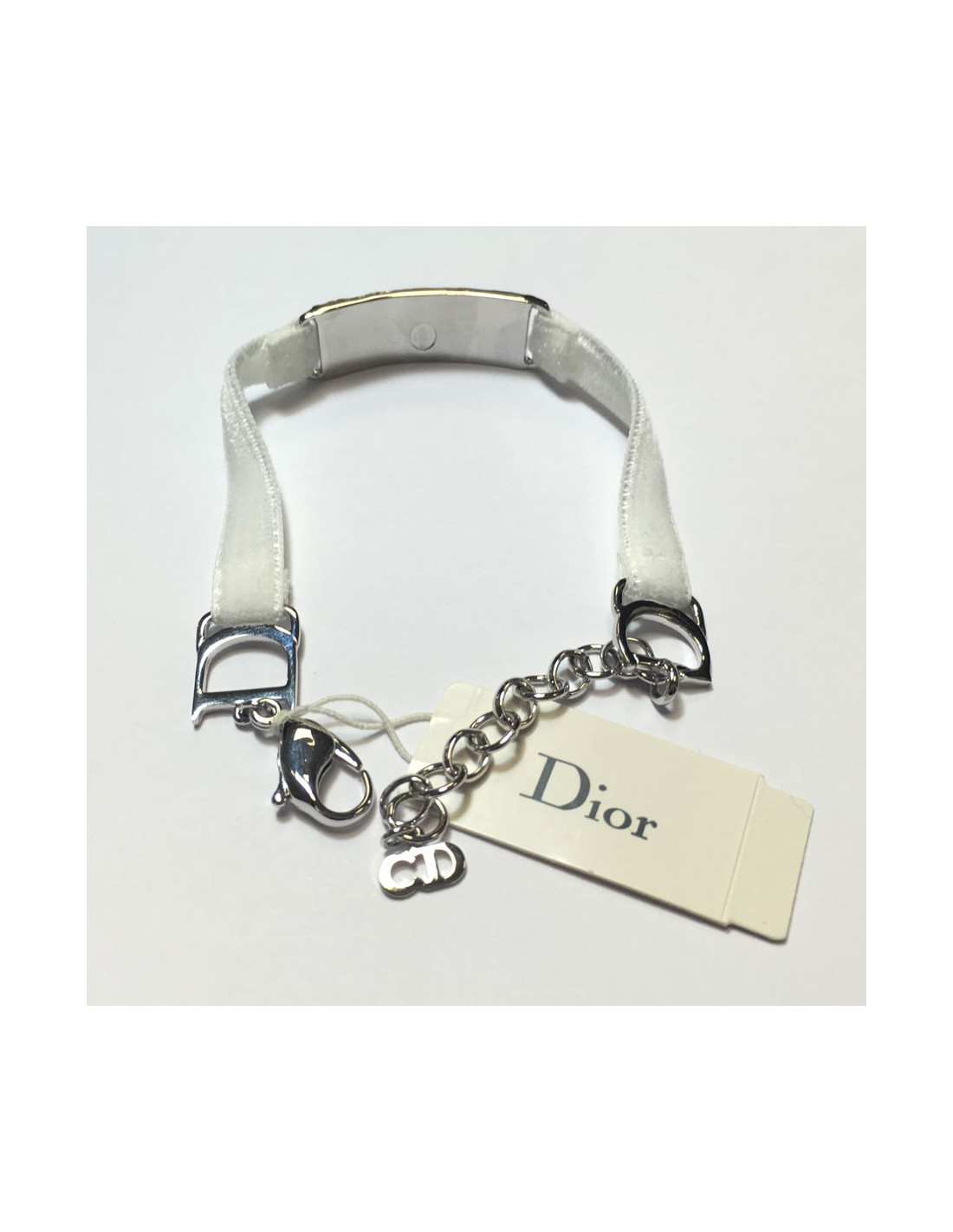 DIOR silver metal and white velvet Ribbon Bracelet