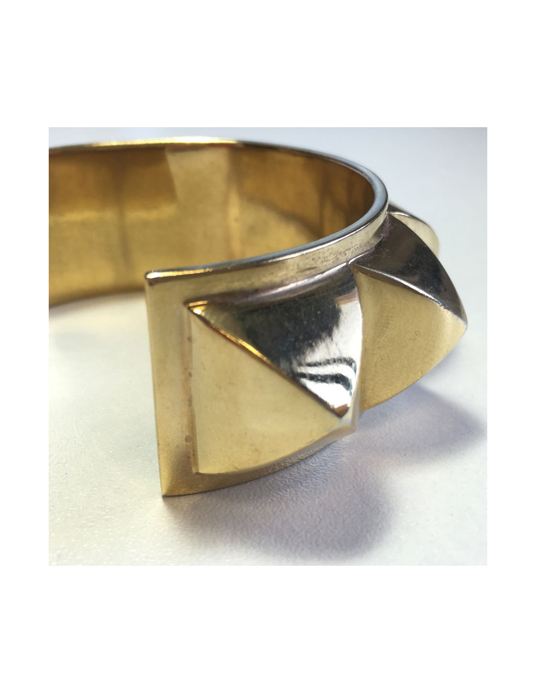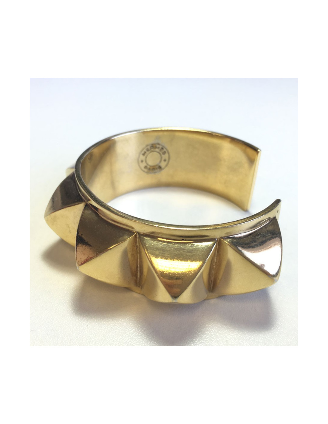 HERMES 'Collier De Chien' rigid cuff bracelet in gilded metal.