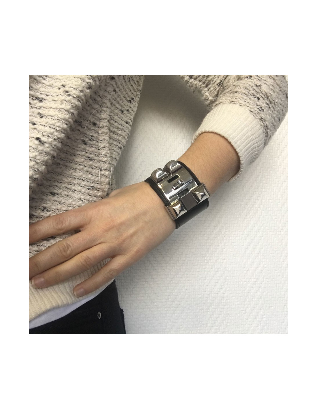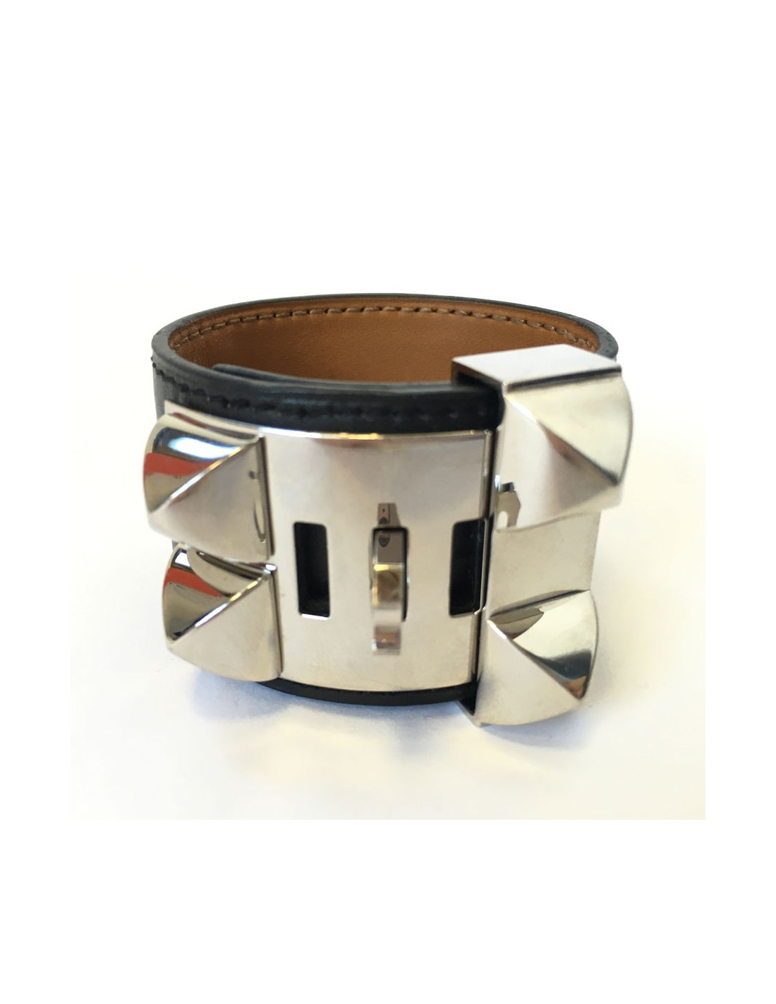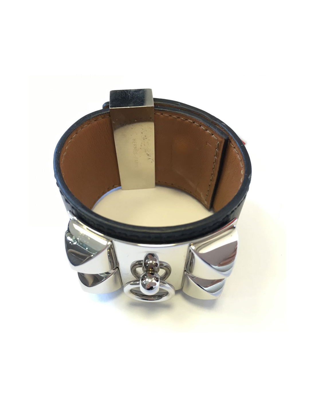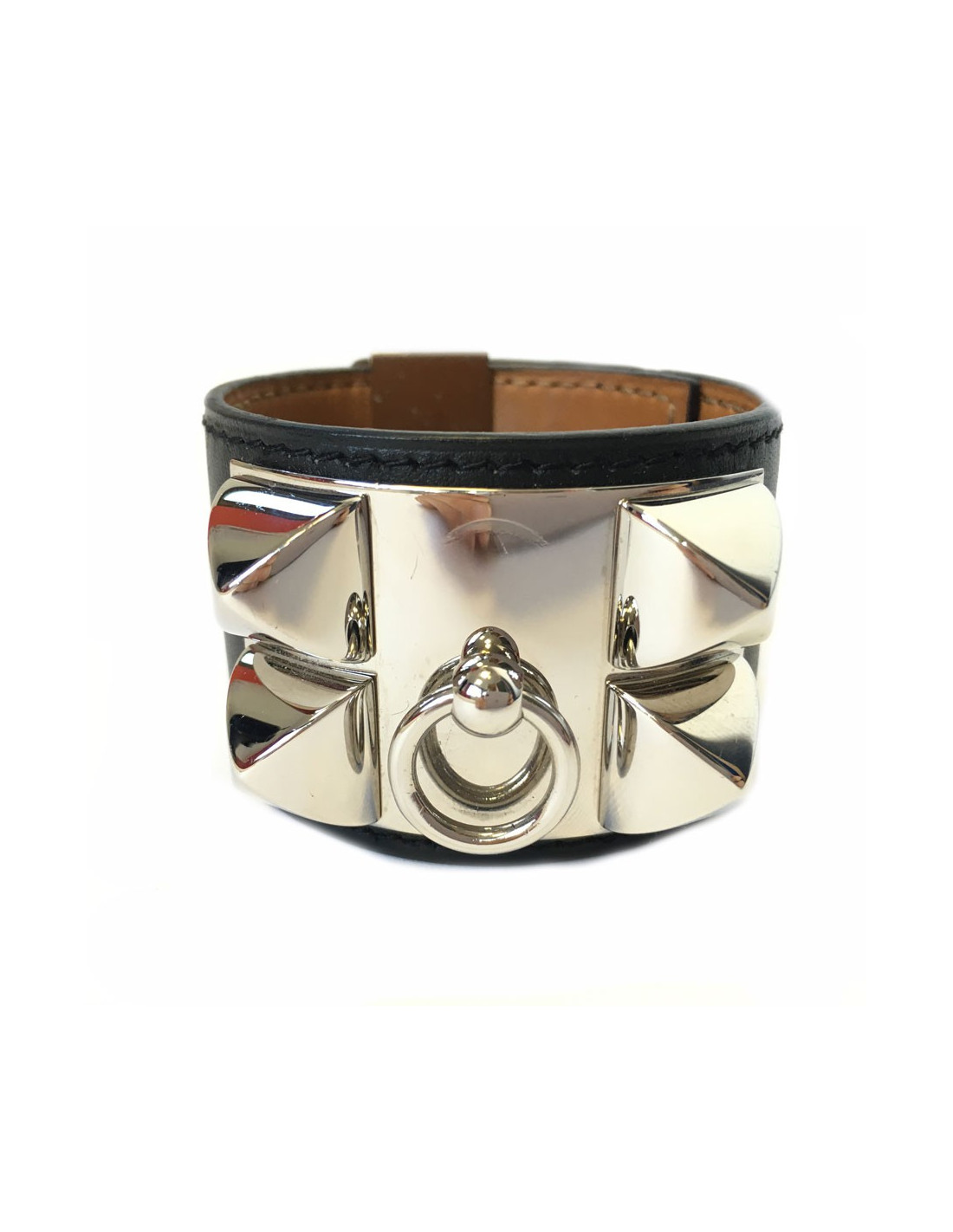 HERMES "Fido" cuff size S black box leather