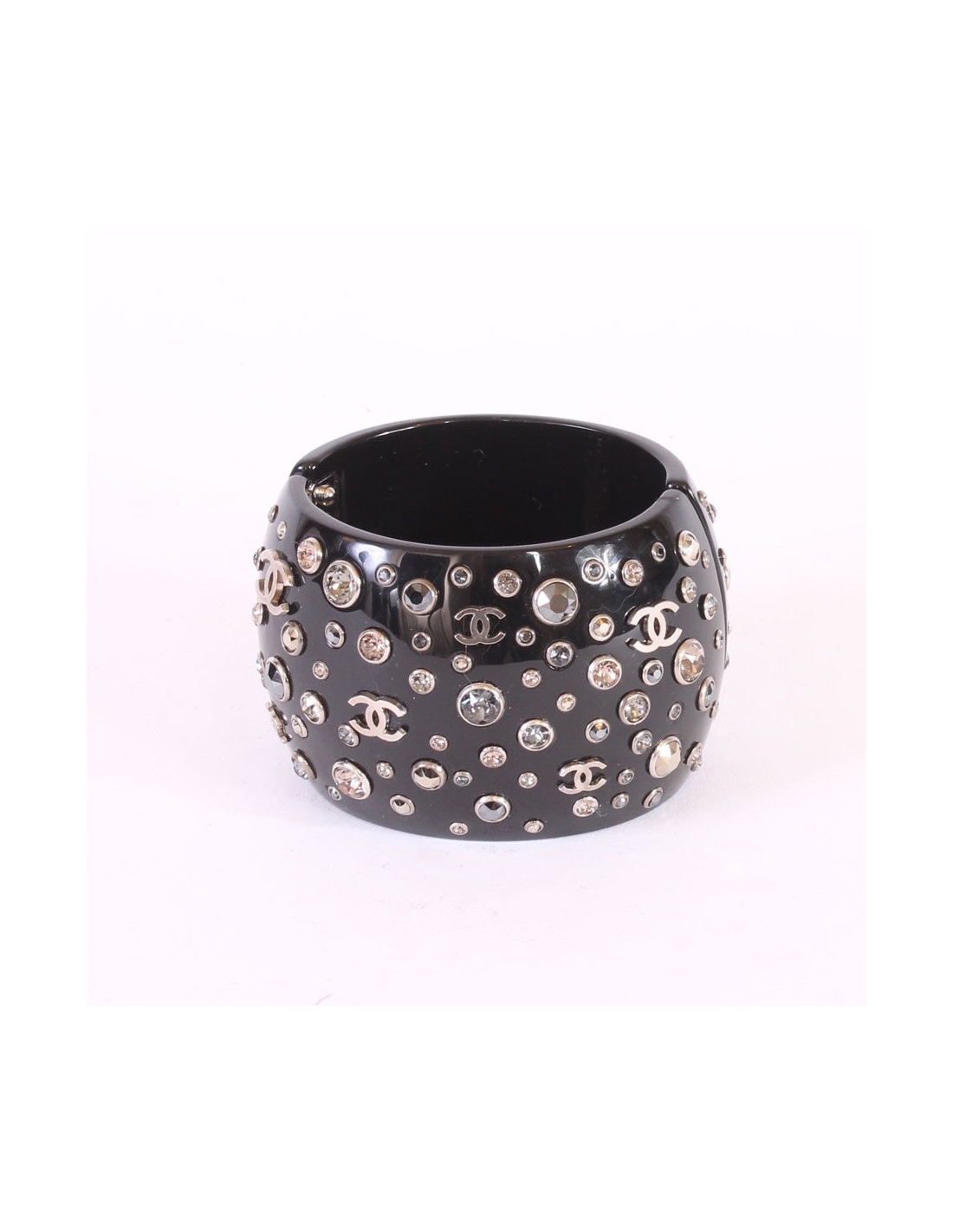 Last items in stock BRACELETS CHANEL flower bracelet CHANEL 25154 750.00 € CHANEL rigid silver flower bracelet Materials : metal, resin, fabric, rhinestonesColors : silver, multicolorCondition : very goodMeasurements : internal wrist circumference : 19 cm, width : 3,3 cmFrom the CHANEL runway Add to cart