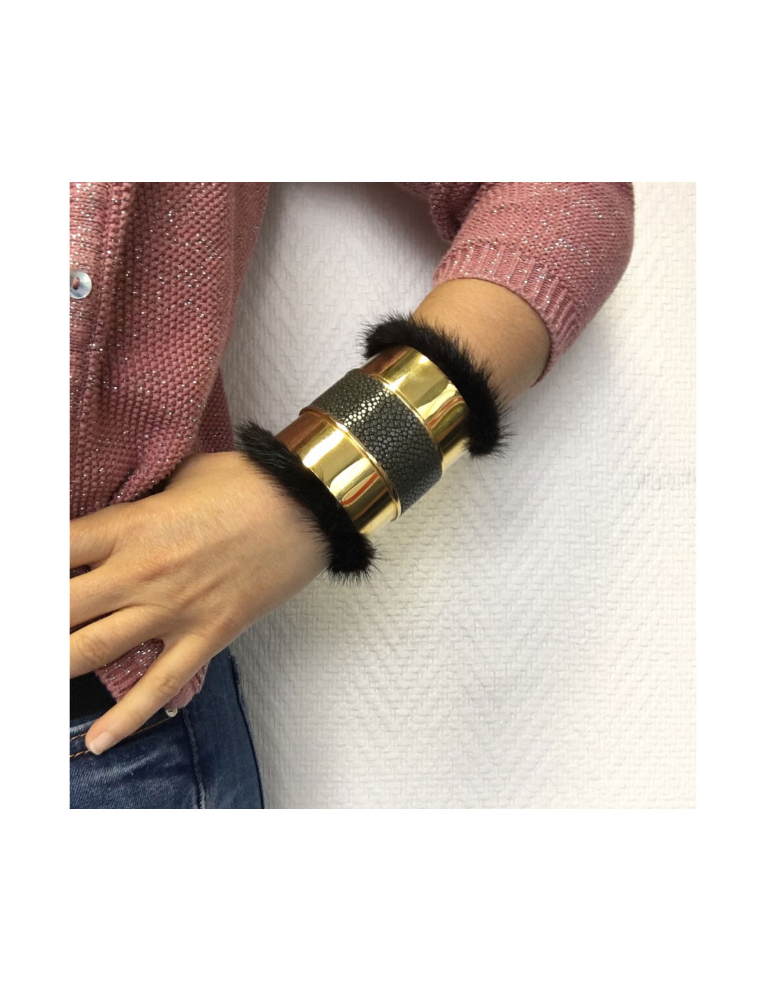 Last items in stock BRACELETS Unbranded leather and 18 k gold bracelet AUTRES MARQUES 16575 880.00 € Unbranded leather and 18 k gold bracelet Condition: good (the gold parts have patina)Matrials: leather, 18 carats goldColors: brown, goldMeasurements: length: 16cm, height: 1cmDetails: Lovely rigid bracelet in aged brown leather with beige saddle stitching. The corners are in solid 18-carat gold, set with 2 aged coins, in the spirit of Bulgari jewelry. It... Add to cart