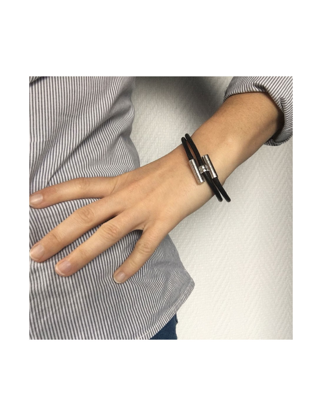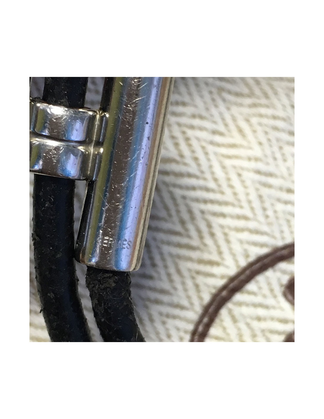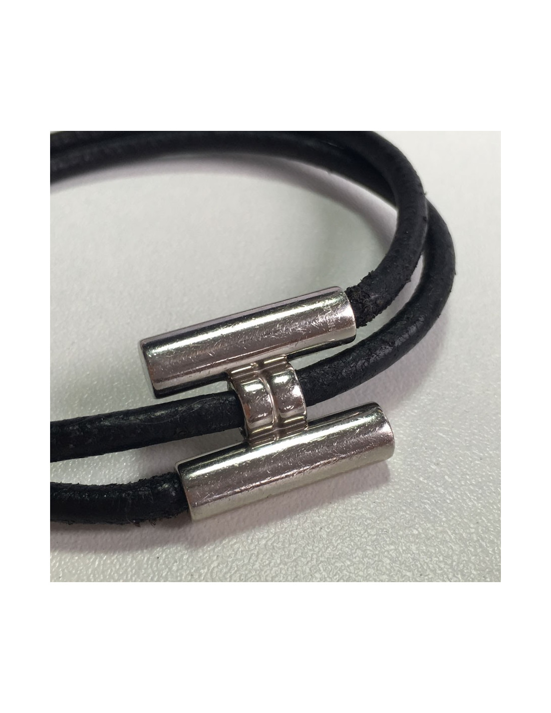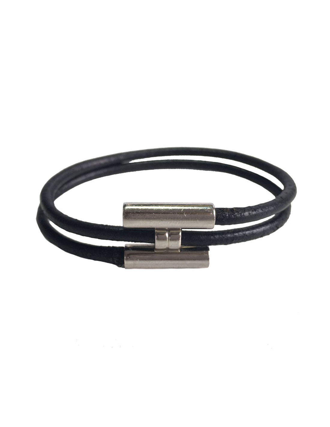 Dizzy HERMES leather black and silver ring link bracelet