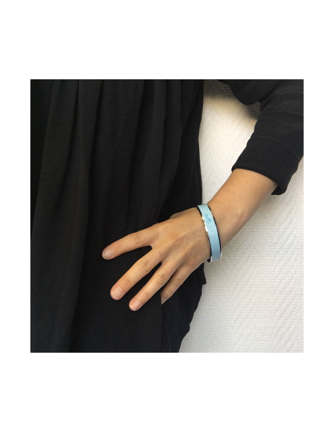 HERMES enamel aquamarine and metal ring medium bracelet. Reason: horse-drawn carriages.