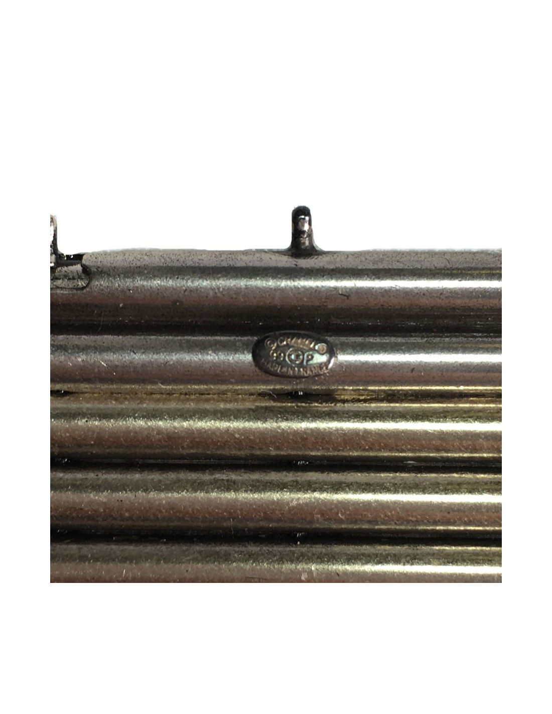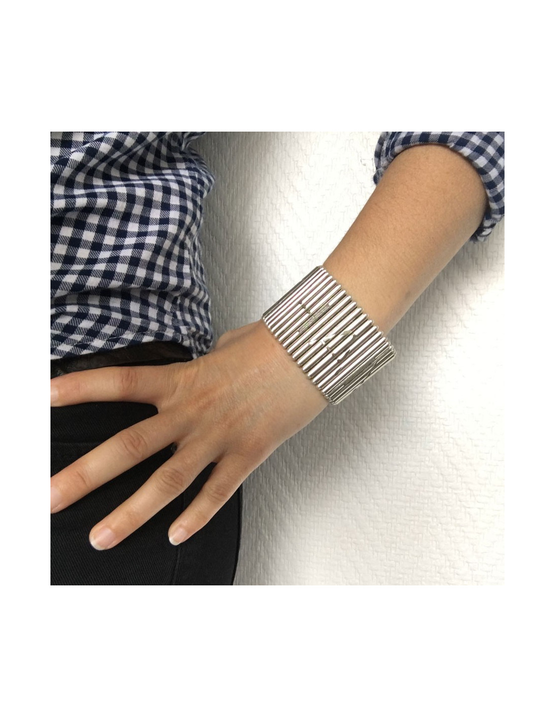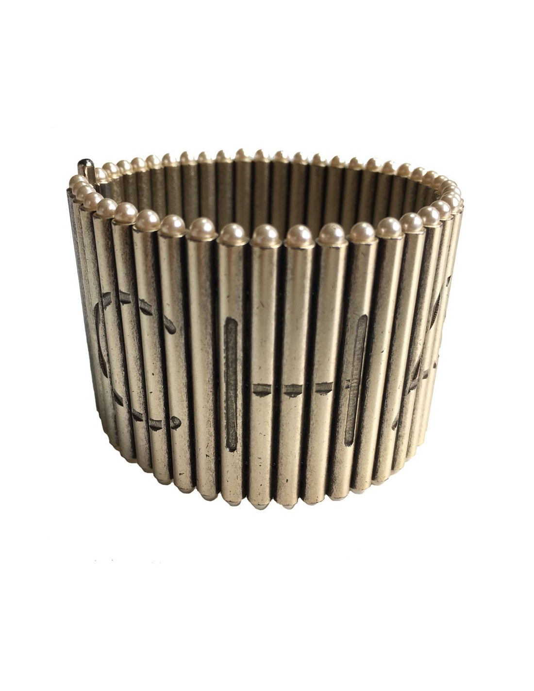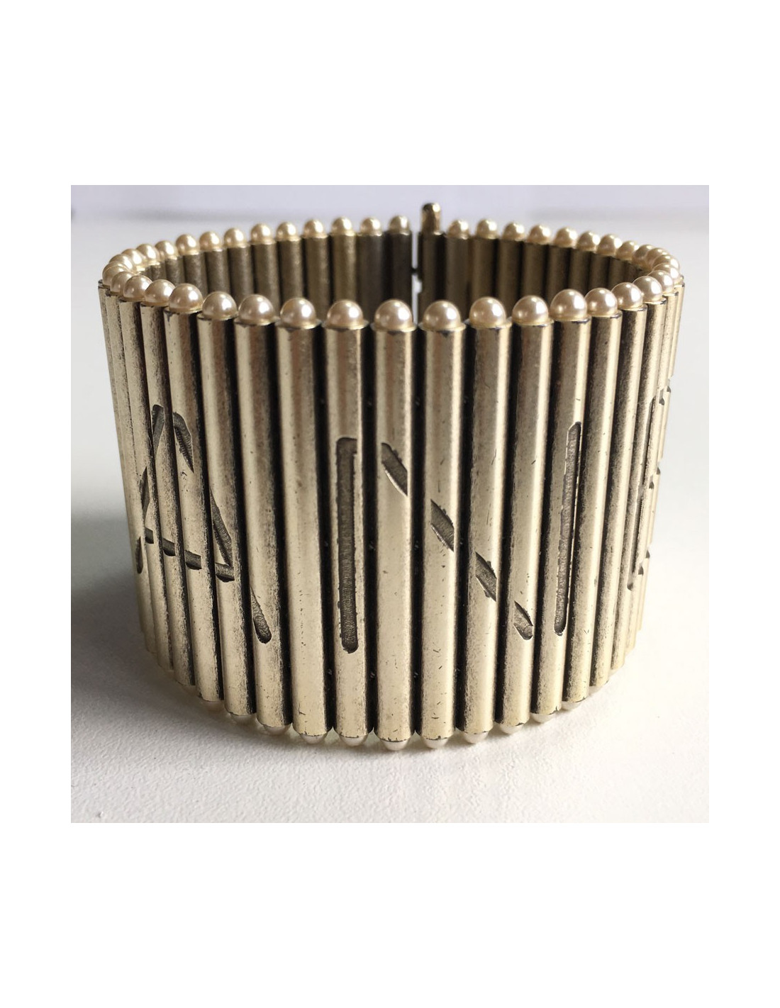 Beautiful CHANEL cuff articulated silver metal and Pearly beads. Serious CHANEL on the bracelet. By hook clasp. Lozenge of the brand presents.