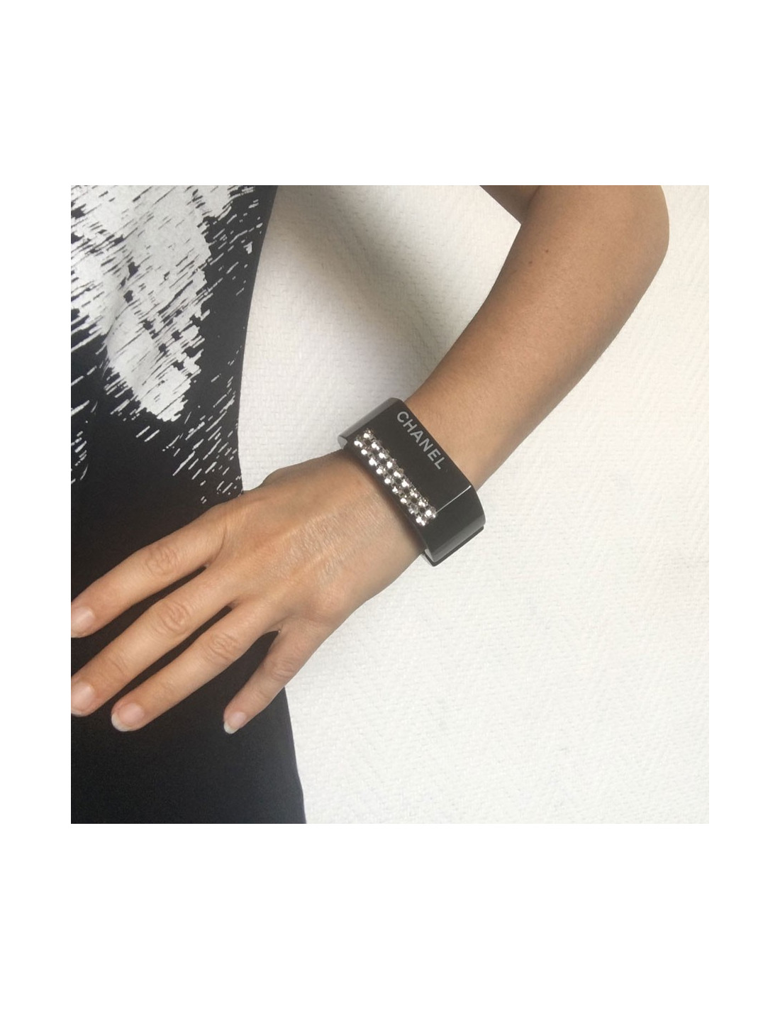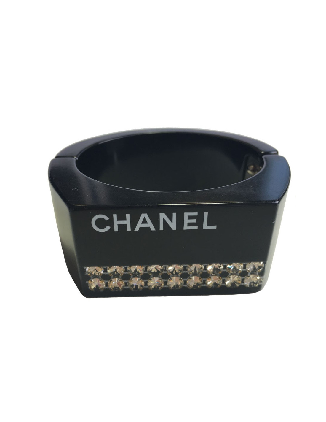 CHANEL cuff in black plastic and inclusion of white rhinestones