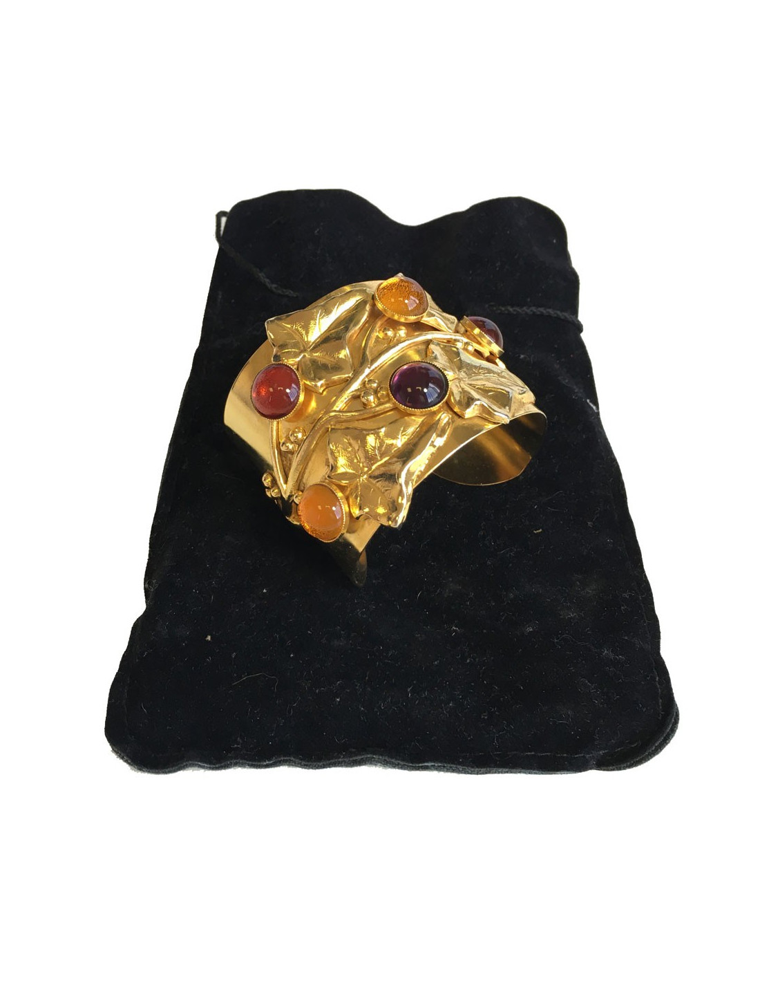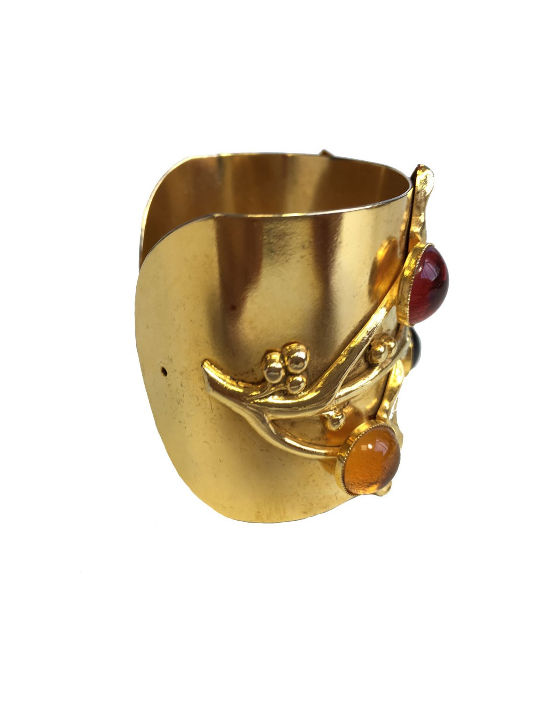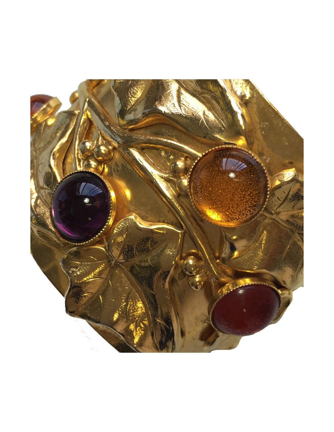 Beautiful FERRANDIS cufflinks in gold metal and multicolored resin. A branch of leaves Golden embossed on the bracelet. In perfect condition. This brand lozenge.