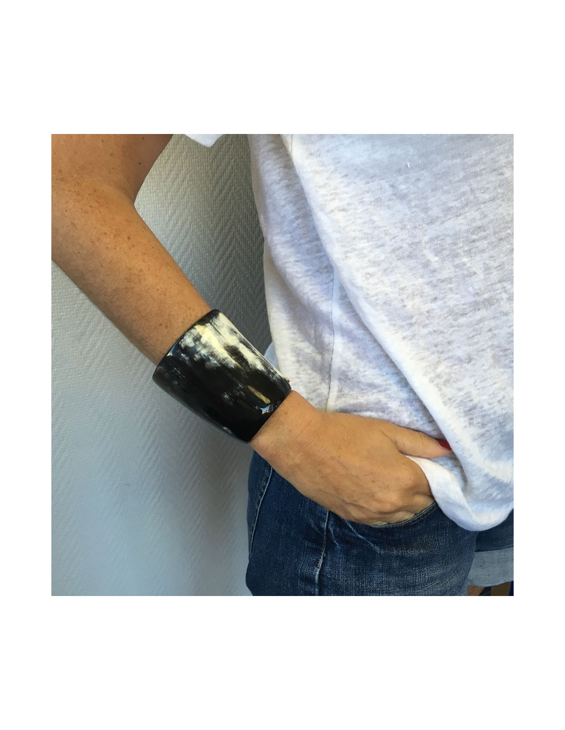 Cuff CELINE Horn, color: black, gray and white. In very good condition. Lozenge of the mark at the bottom of the bracelet.