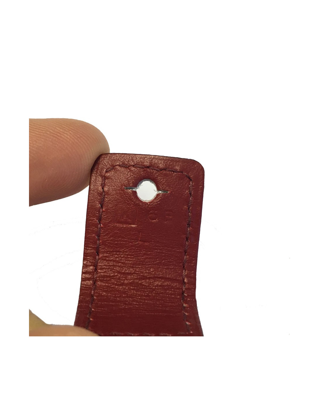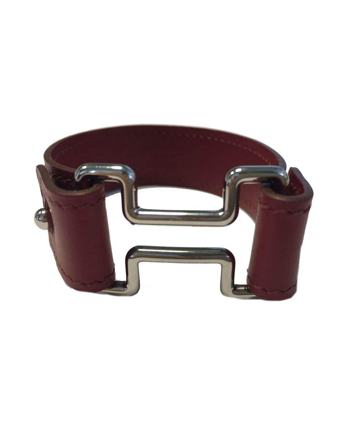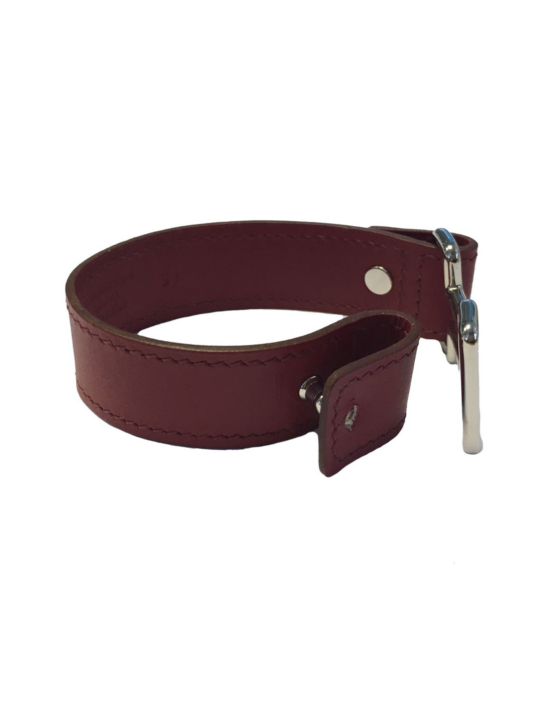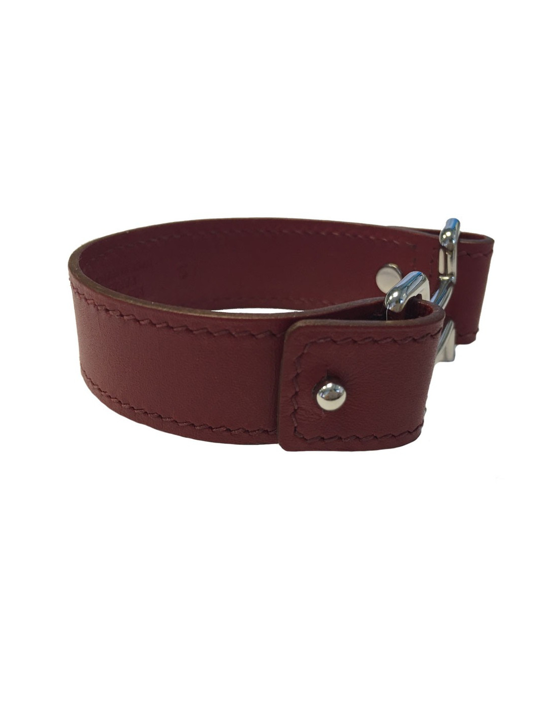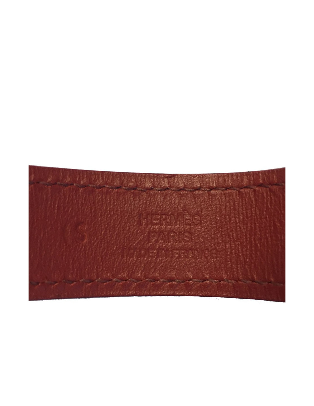 -151.00 € Last items in stock BRACELETS HERMES CDC cuff bracelet in blood color tadelakt calfskin HERMES 21231 699.00 € 850.00 € Hermès Médor cuff bracelet in blood color tadelakt calfskin. Palladium silver hardware. New condition. Stamp R in a square, year 2014. Stamp S from private sales. Made in France. Protection is still on the hardware. Dimensions: width 4 cm, total length 22 cm, clasp at the first hole 16 cm, middle 18 cm, last hole 19 cm. Will be delivered in a new,... Add to cart