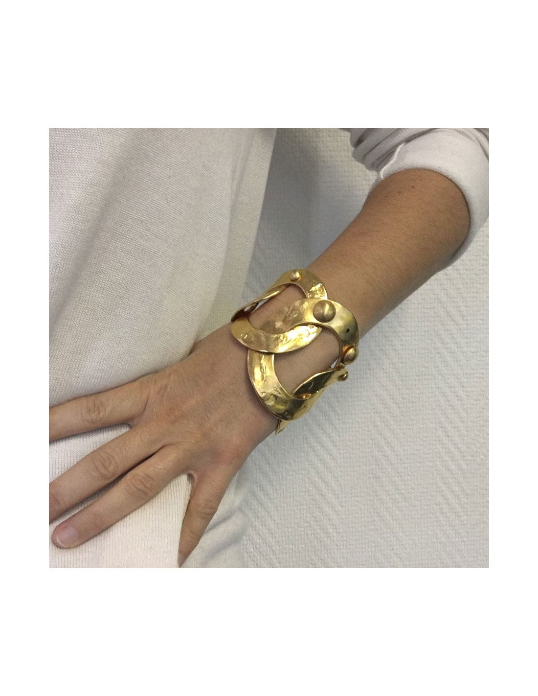 Bracelet LOUIS VUITTON anneaux en métal plaqué or martelé