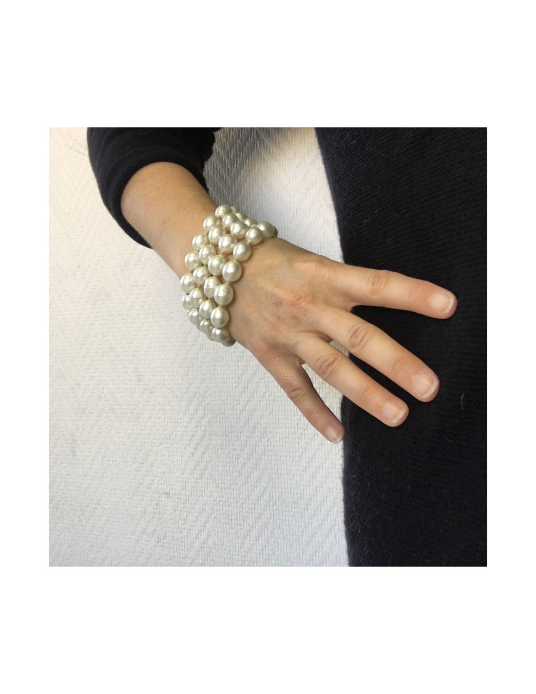 Chanel sublime bracelet four rows of pearly glass and metal beads Golden.