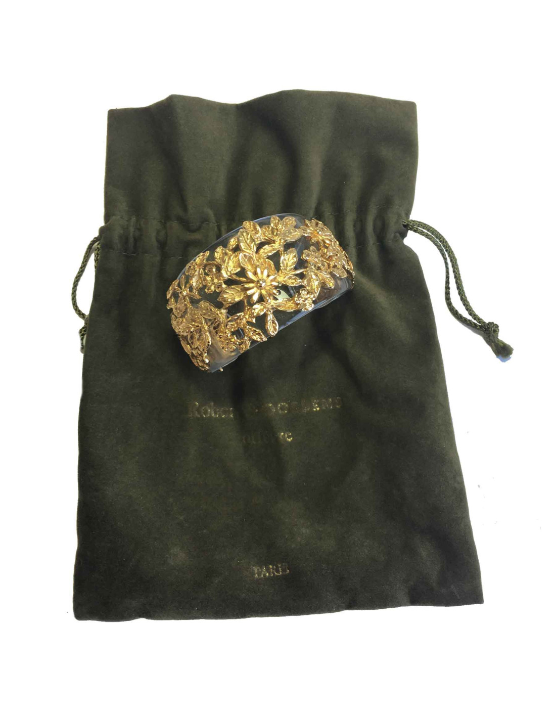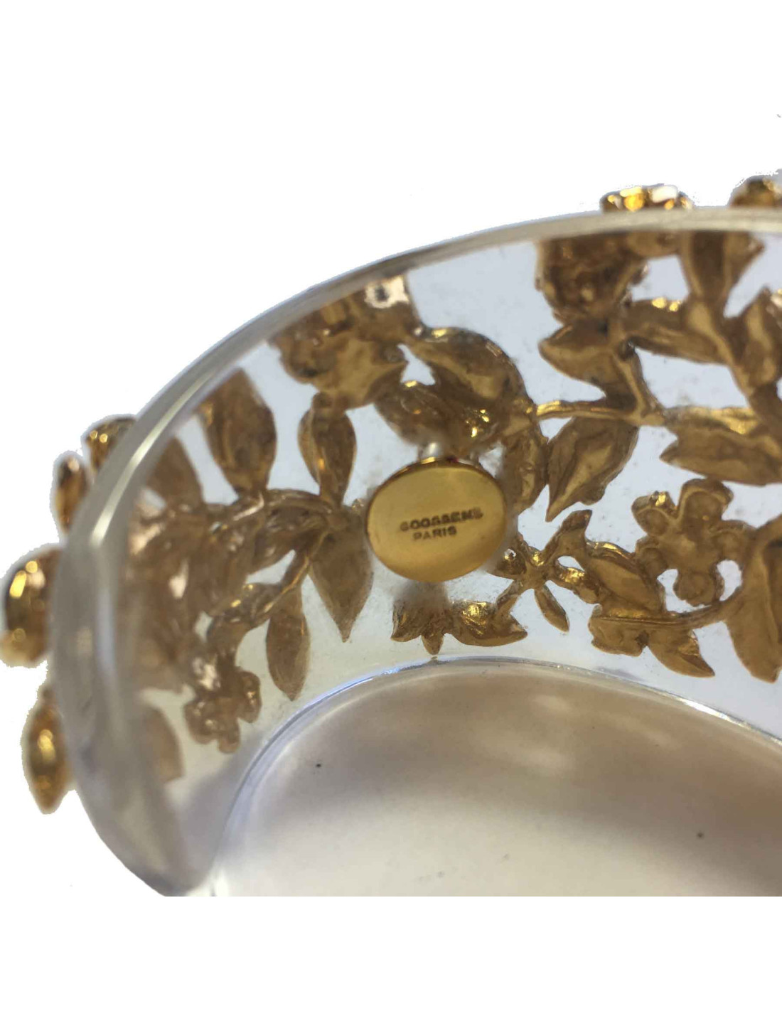 Couture!! Robert Goossens cuff in transparent plexiglass, leaves and flowers in gold metal.